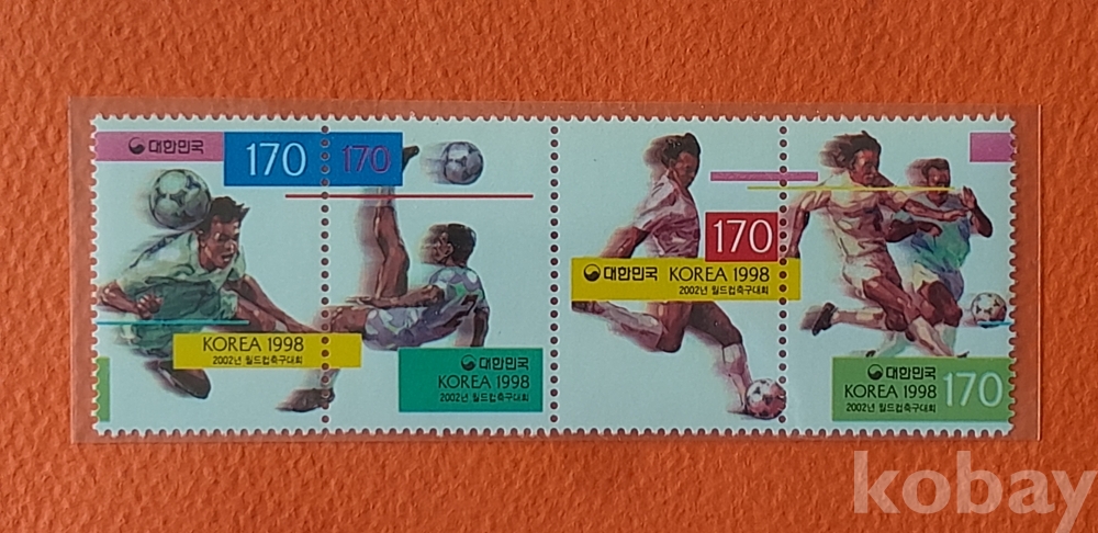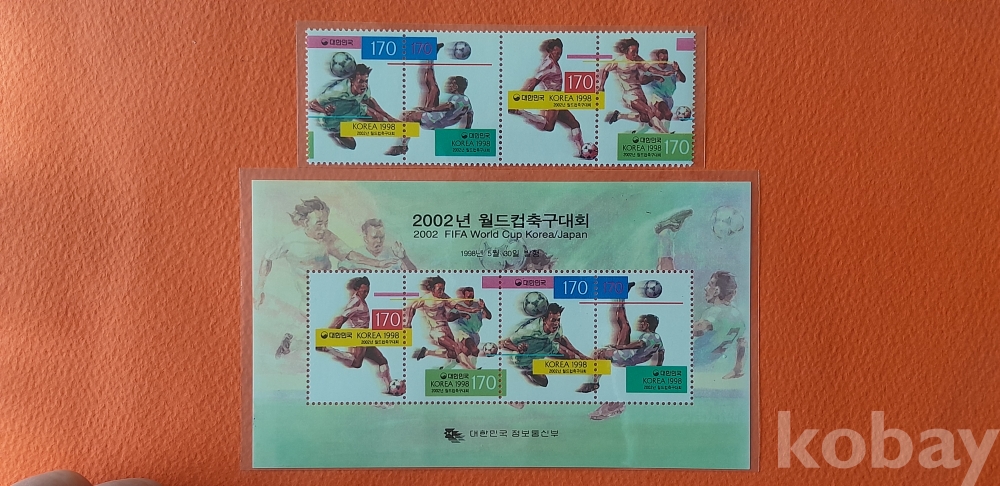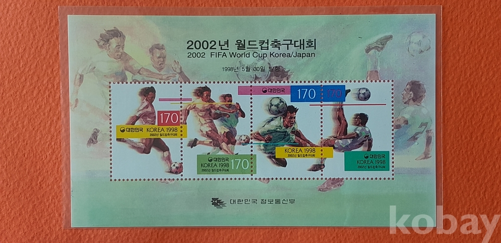 2002 월드컵 축구대회 4종 우표와 시트 묶음(1998년) 입니다.
