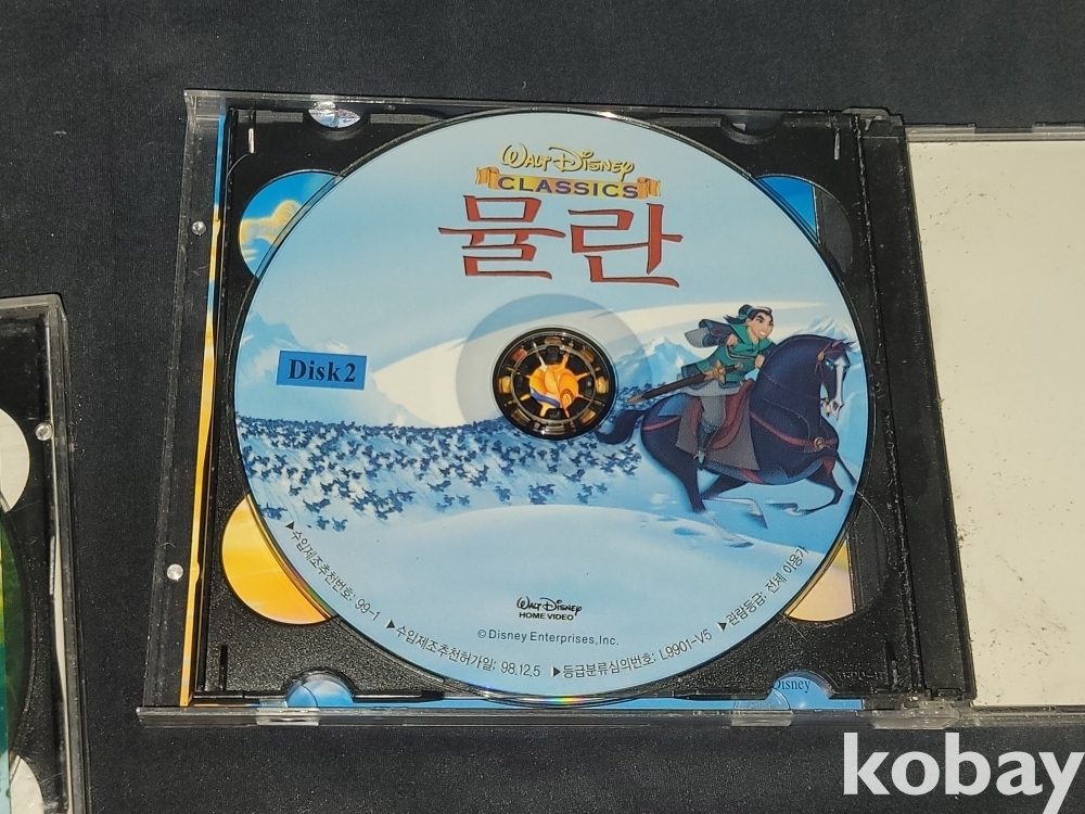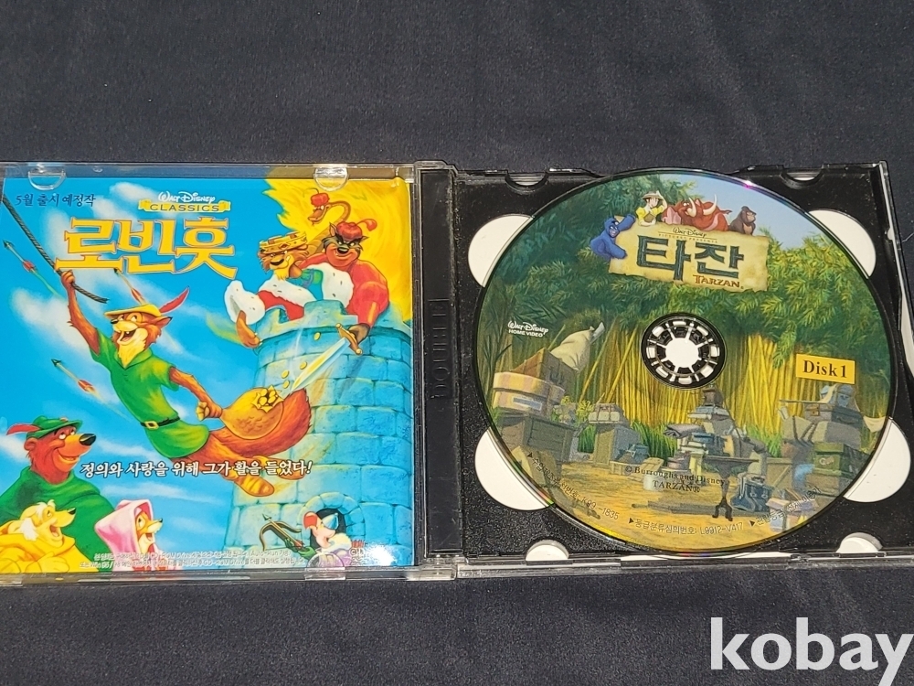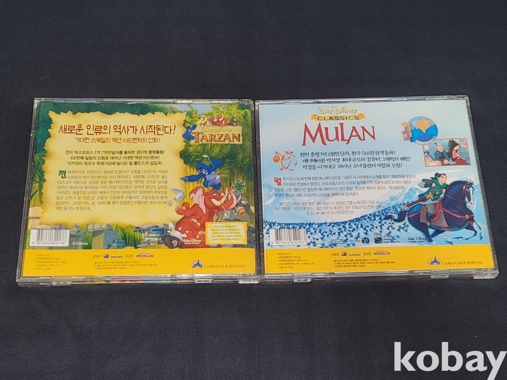 빈티지 디즈니 인기 명작 애니영화 타잔, 뮬란 CD 2개 일괄입니다.