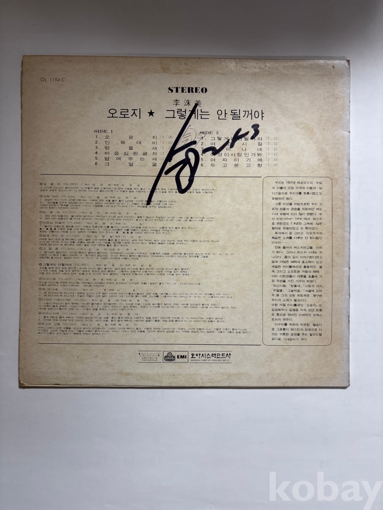 | 자켓상태 | G : 눈에 띄는 손상, 테이프, 필기 존재 | 음반상태 | EX : 재생에 영향 없는 가벼운 기스 존재 | 발매정보 | 초반 | 가사지여부 | 무 |