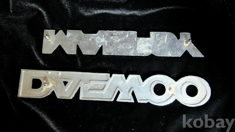 새한 자동차에서 생산된 맵시 자동차 로그와 대우자동차 로그이며 세월에 흔적은 있지만 양호한 상태 입니다.