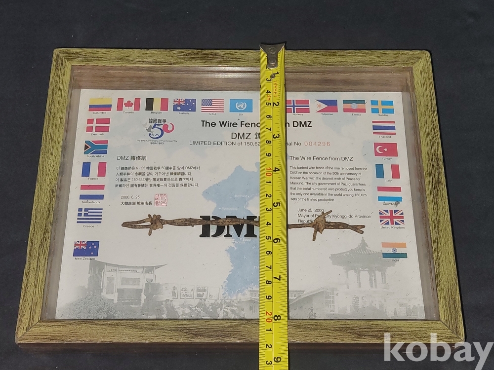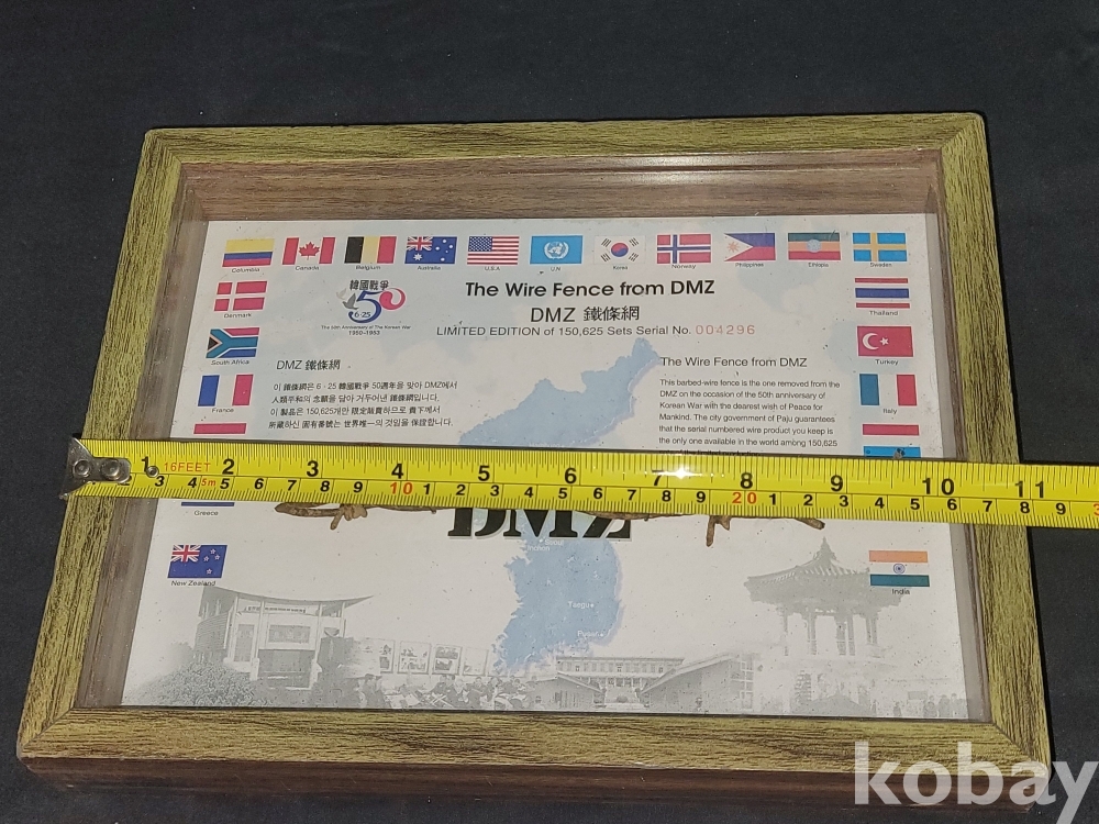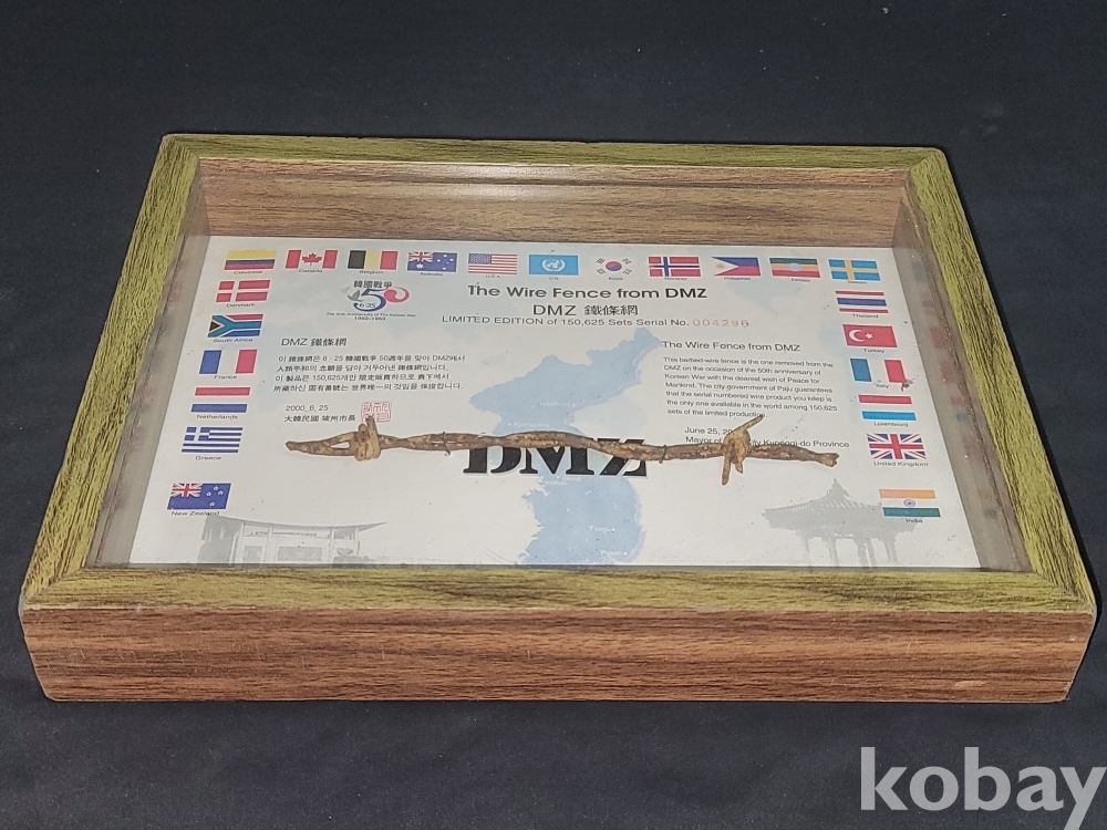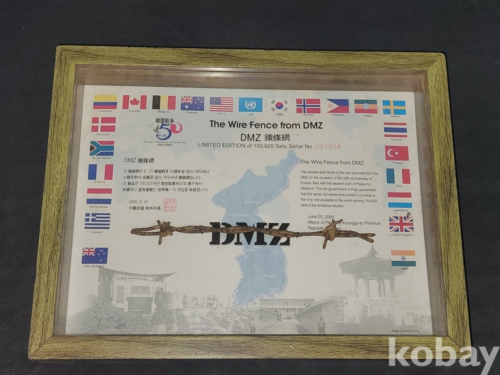 빈티지 2000년 파주시 인증 한국전쟁 50주년 기념 DMZ 철조망 액자입니다.