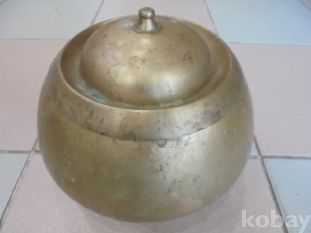 우리에 전통놋요강으로 잘살던집에서는 놋요강을 사용하던것으로 오래된 새는데없는 전통적인 제치뚜껑인 오리지날 놋쇠깨끗한 유기중간치요강