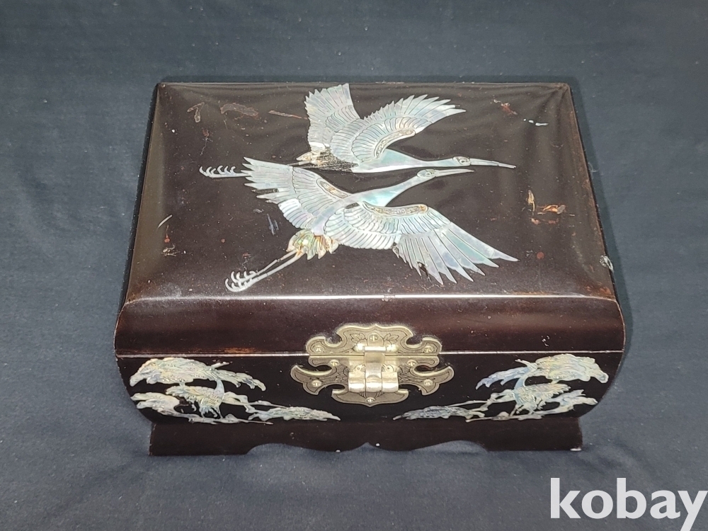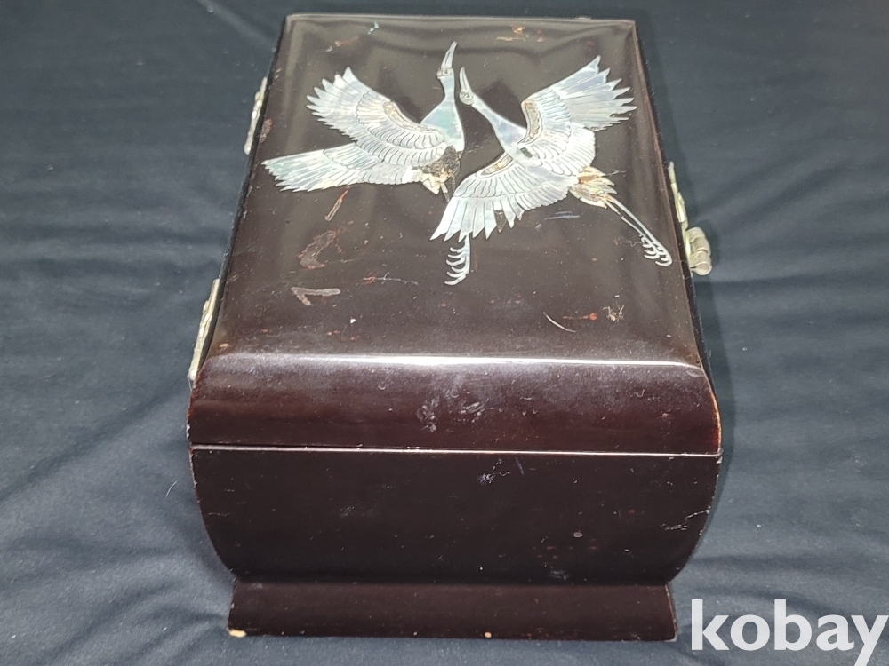멋스러운 학이 그려있는 자개장식의 고급 오르골 자개 보석함입니다.