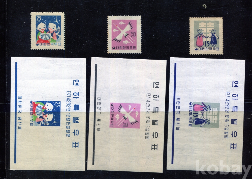 - [시트/우표] 1959년 미사용 3차 연하시트 및 우표 (All MNH : Mint Not Hinged) : 이미지 참조하세요