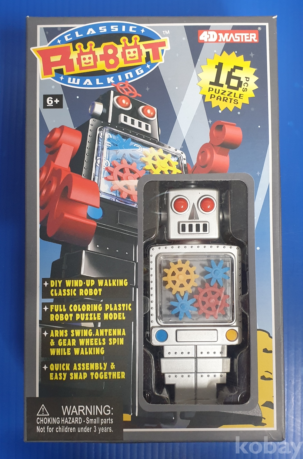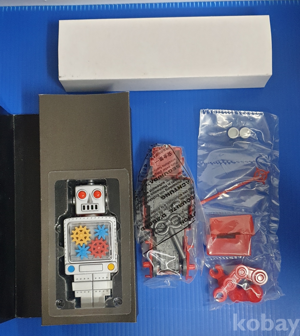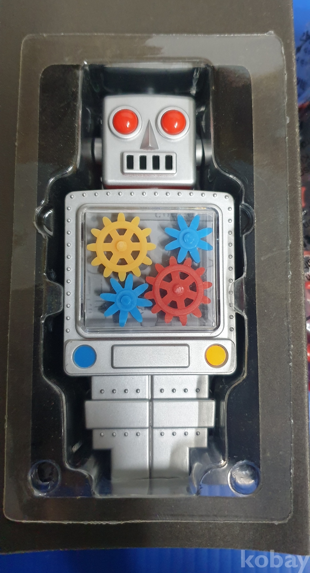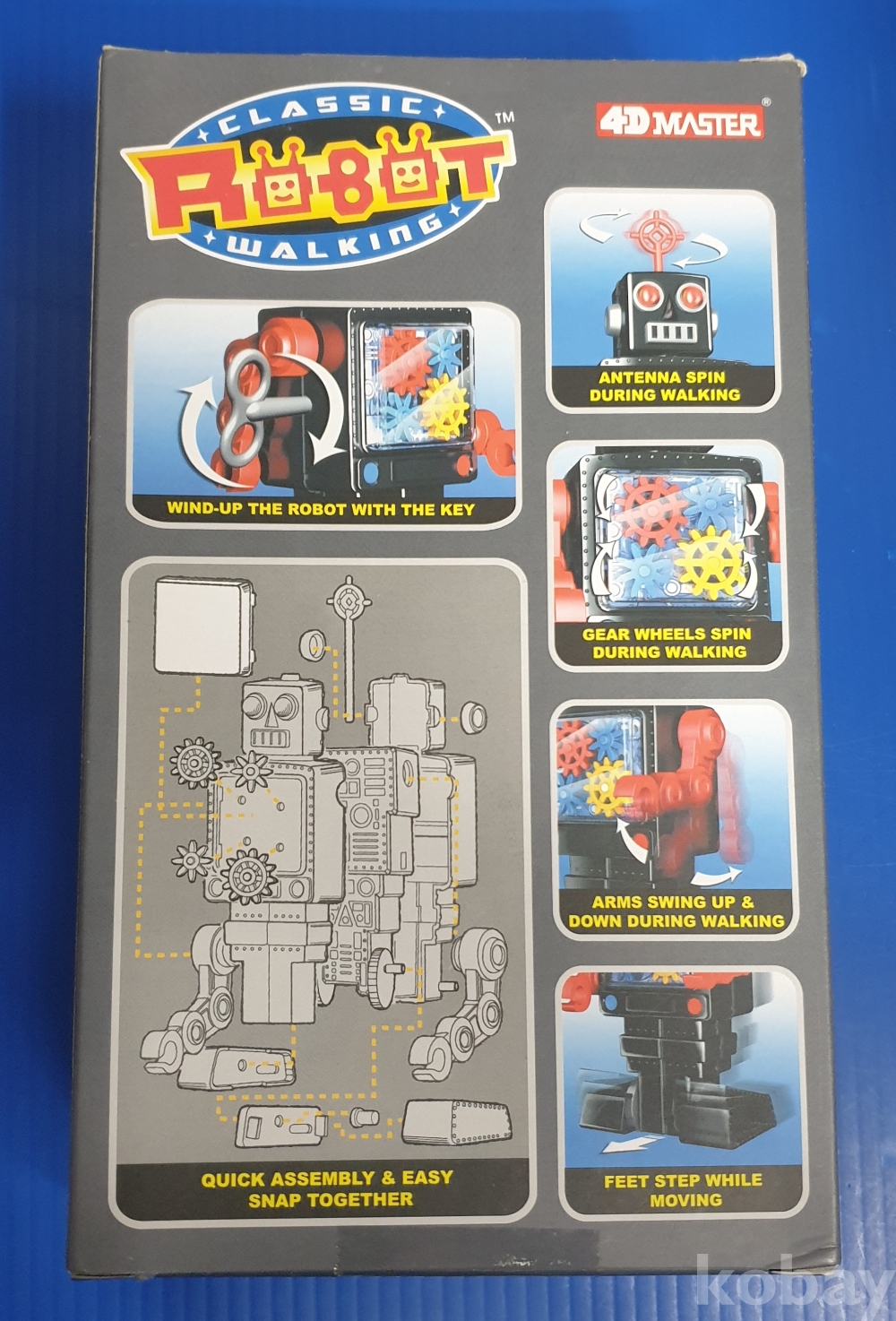 태엽을 감아 놓으면 머리위 안테나 회전, 가슴의 기어 회전, 양팔 가동 및 다리가 움직이며 앞으로 전진합니다.