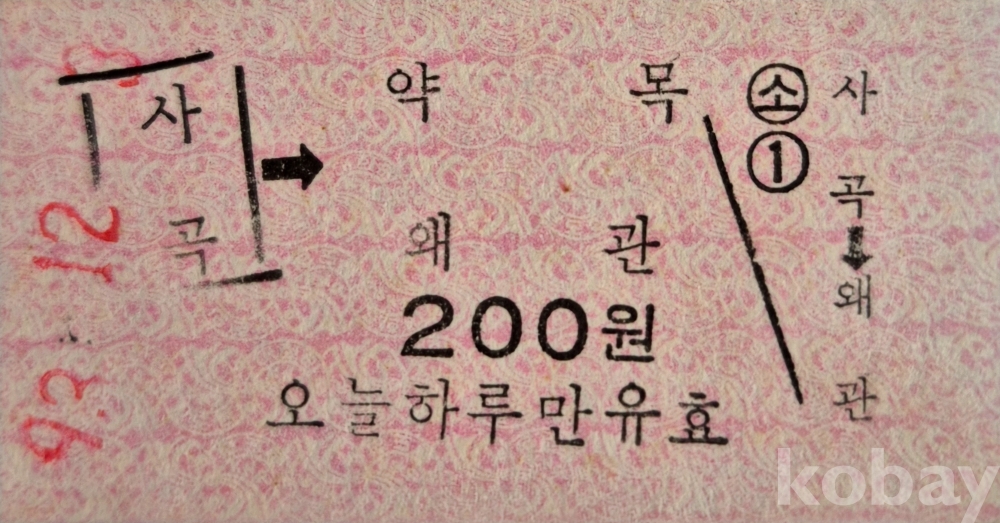 비둘기호 승차권 사곡-왜관 일반입니다.