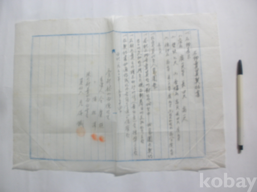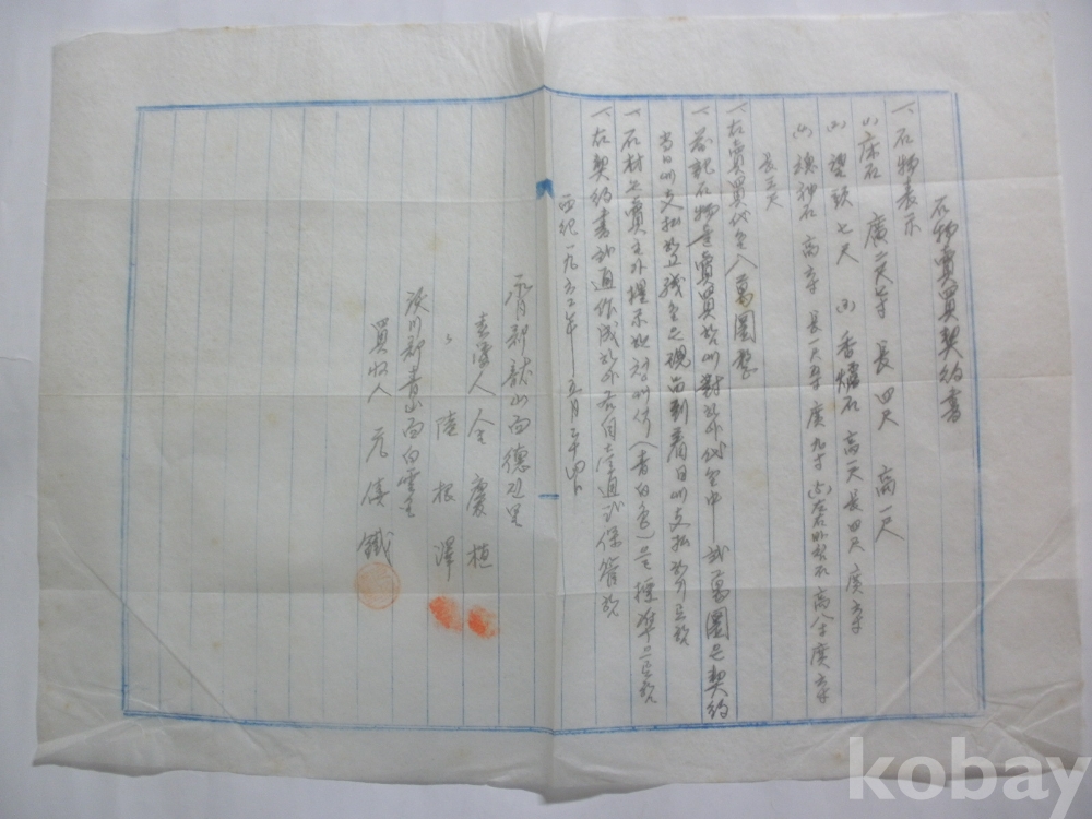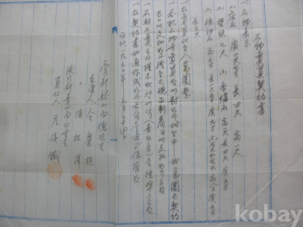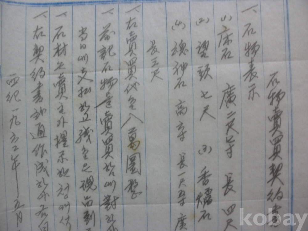 석물 (상석) 매매계약서 (1962년)