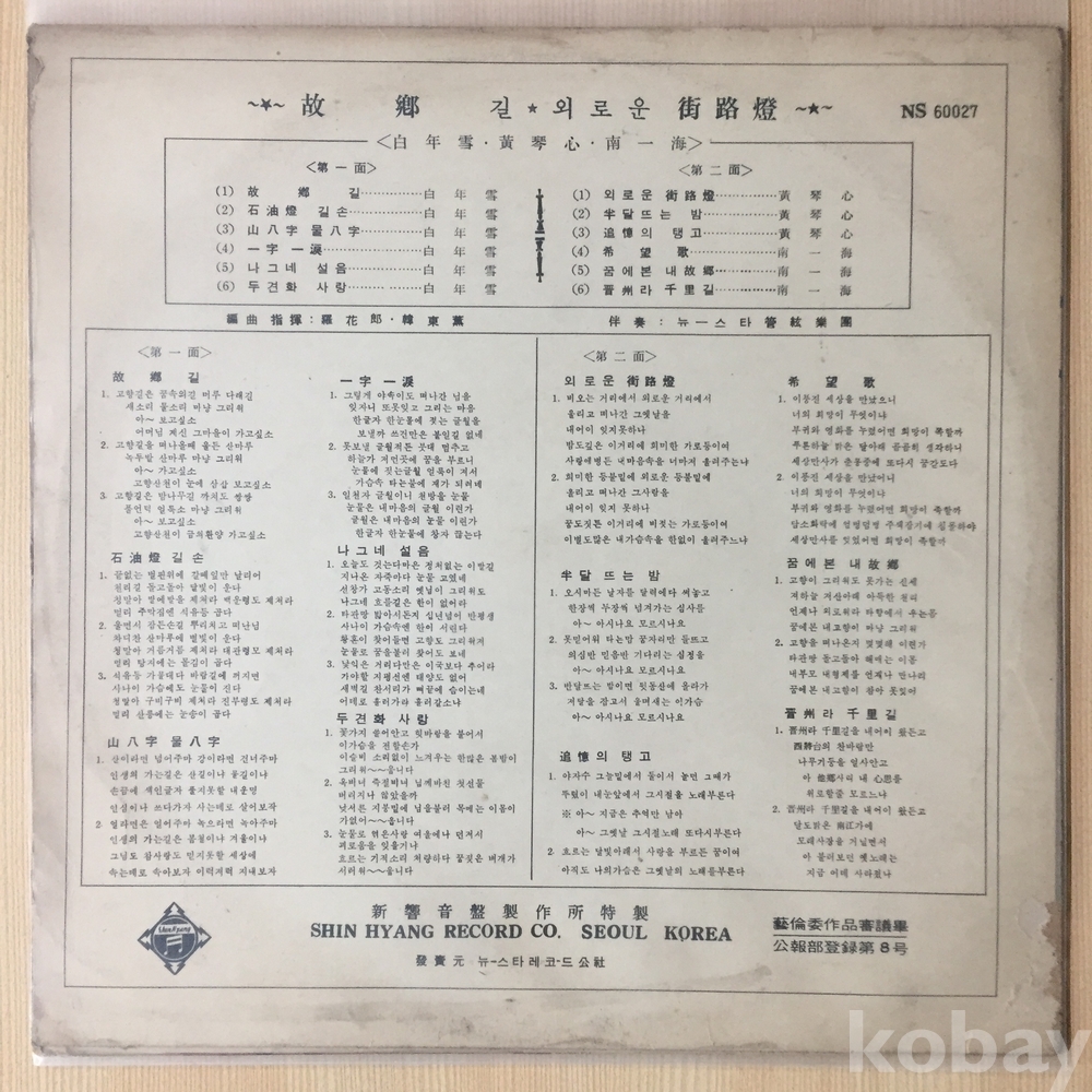 백년설 1. 고향길 2. 석유등 길손 3. 산팔자 물팔자 4. 일자일루 5. 나그네 설움 6. 두견화 사랑 | 황금심 1. 외로운 가로등 2. 반달뜨는 밤 3. 추억의 탱고 4. 희망가 (남일해) 5. 꿈에 본 내 고향 (남일해) 6. 진주라 천리길 (남일해) |