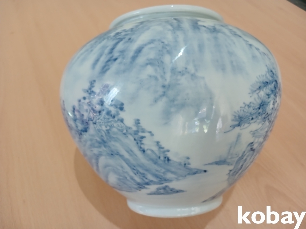 산수 풍경을 아름답게 표현한 달 도자기 입니다.