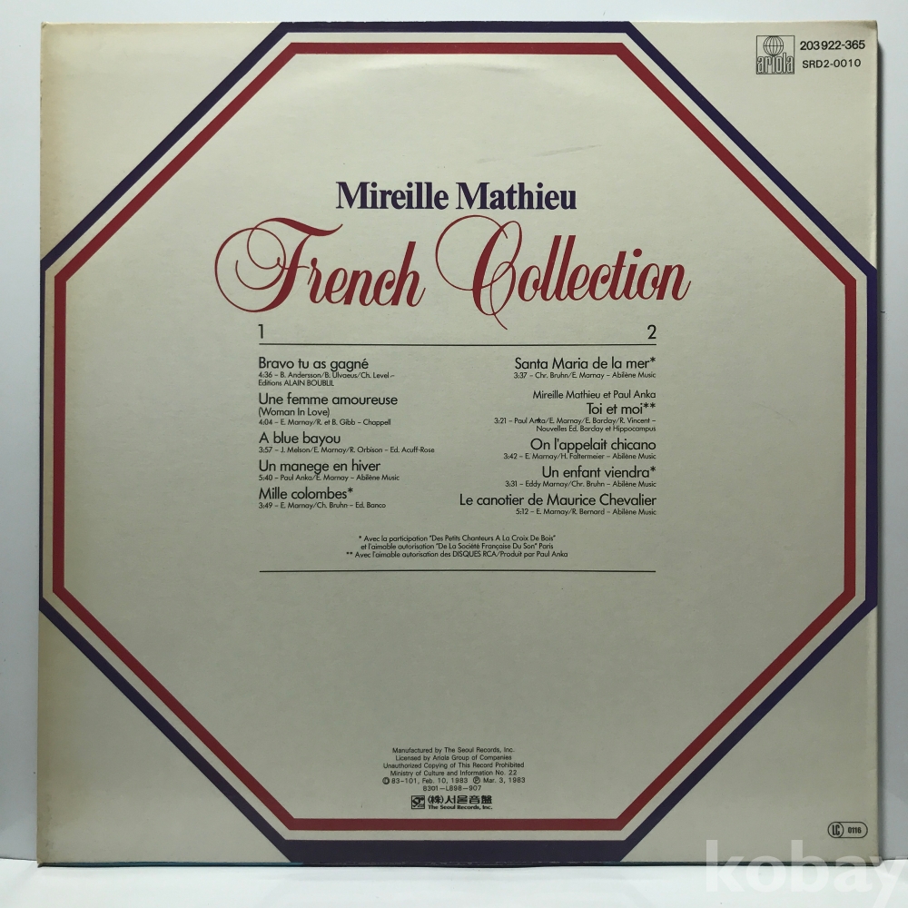 LP 82,350-11 Mireille Mathieu - French Collection . 자켓 EX+ 알판 EX+ 83 년제작 국내반