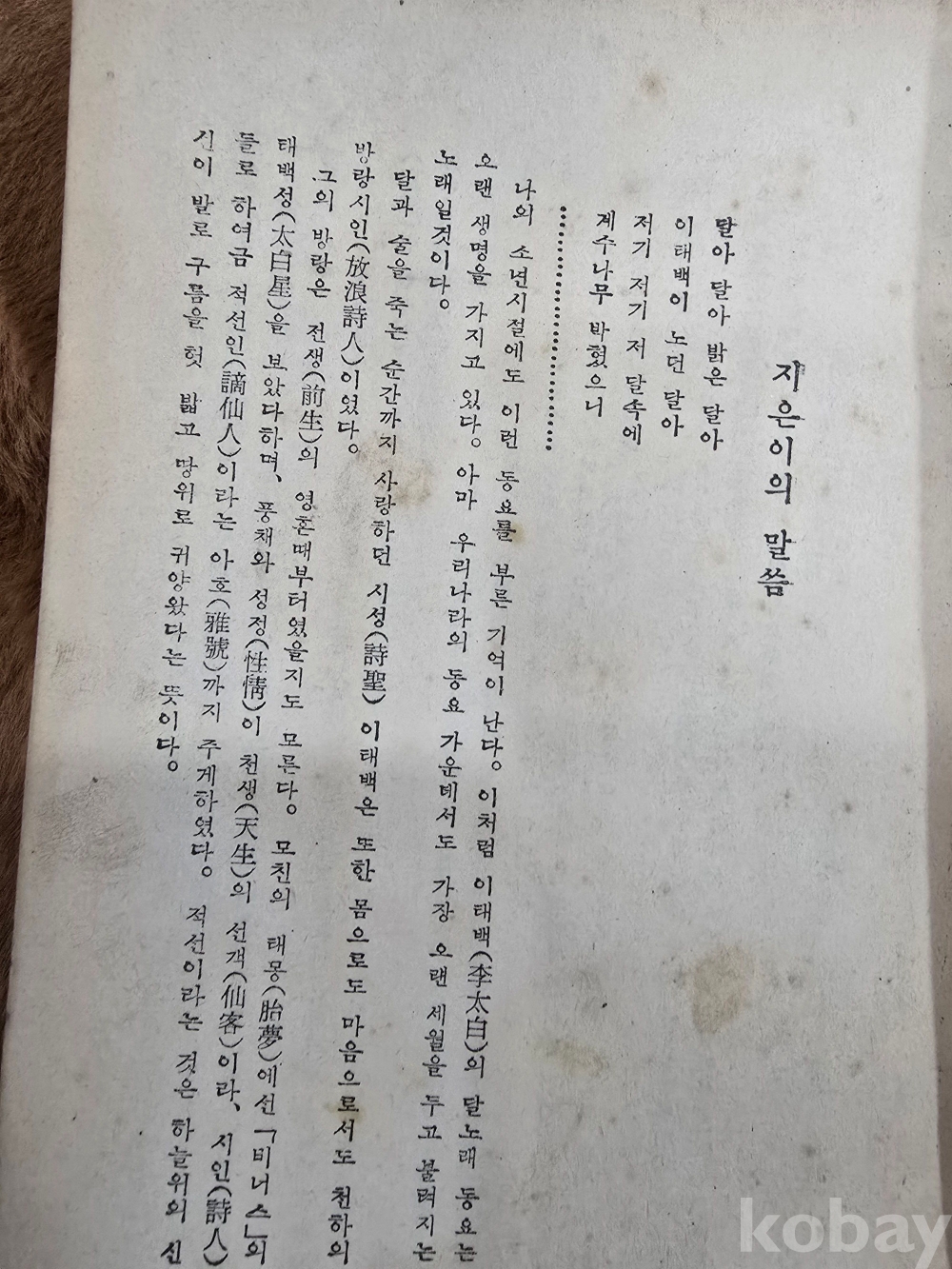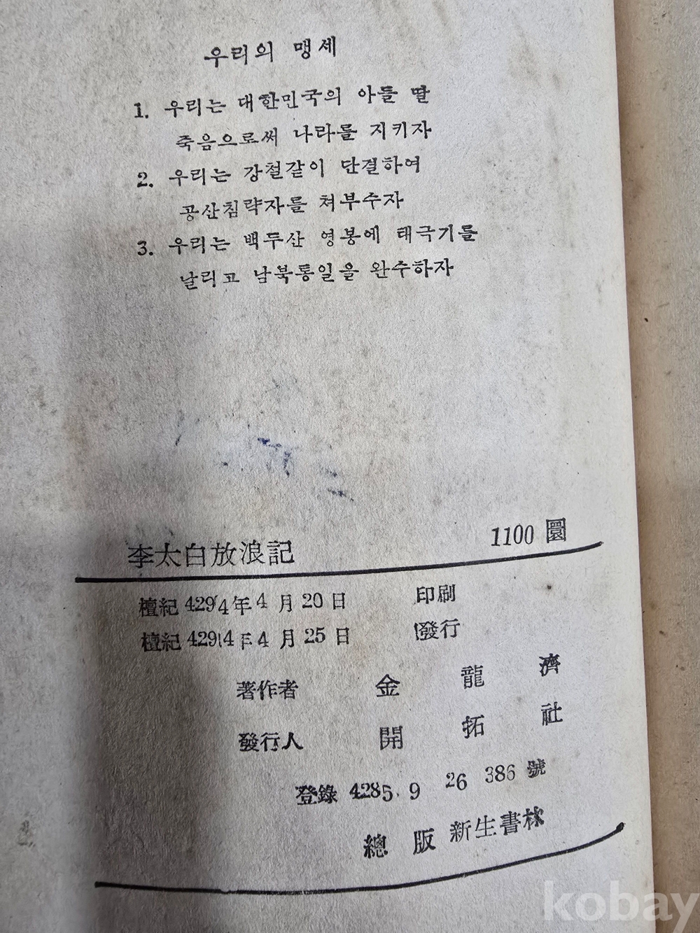 (희귀본) 이태백 방랑기 / 李太白 放狼記 김용제 저 / 1961년 발행