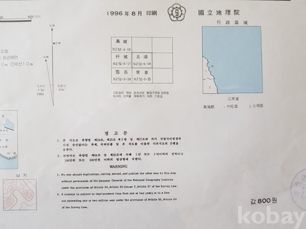 **** 1975년 1:50,000 지도 (오호) 고성군 수록됨