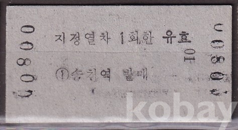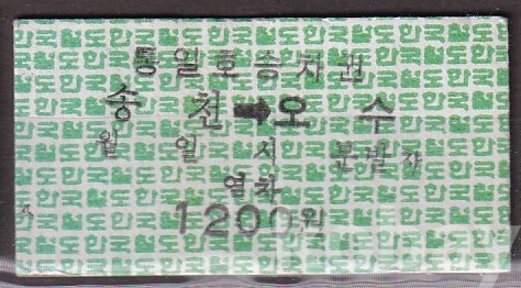 - 미사용 통일호 승차권 " 송천 ▶ 오수 " 1200원