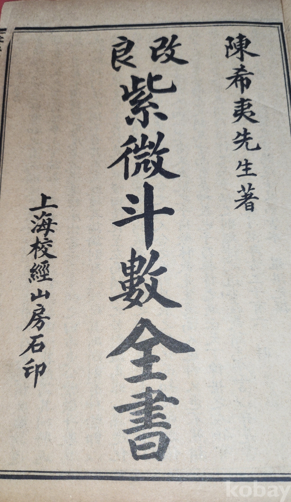 중국 陳希夷,(진희이 872년경~989년경) 상해 교갱제산방에서 발간된 "개량자미두수전서"4권 완질입니다,