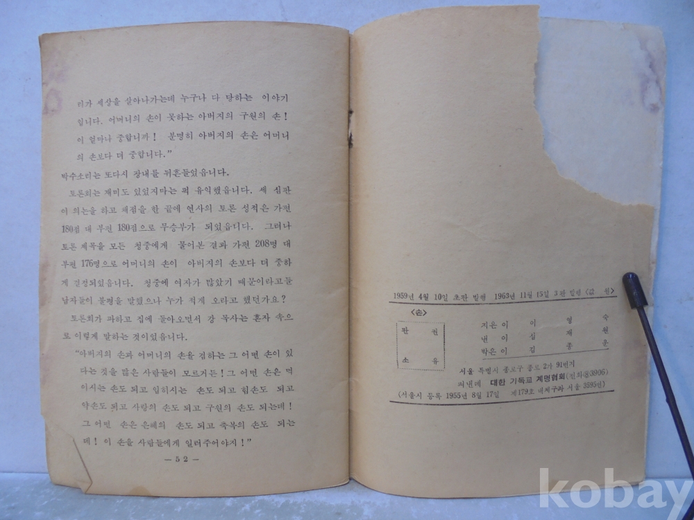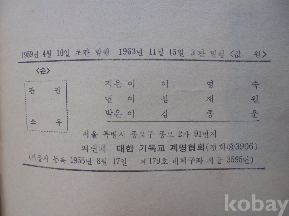 1963년 " 손 " ( 대한 기독교 계명 협회 )