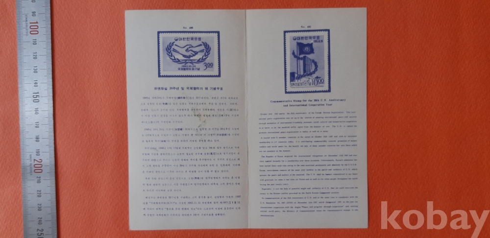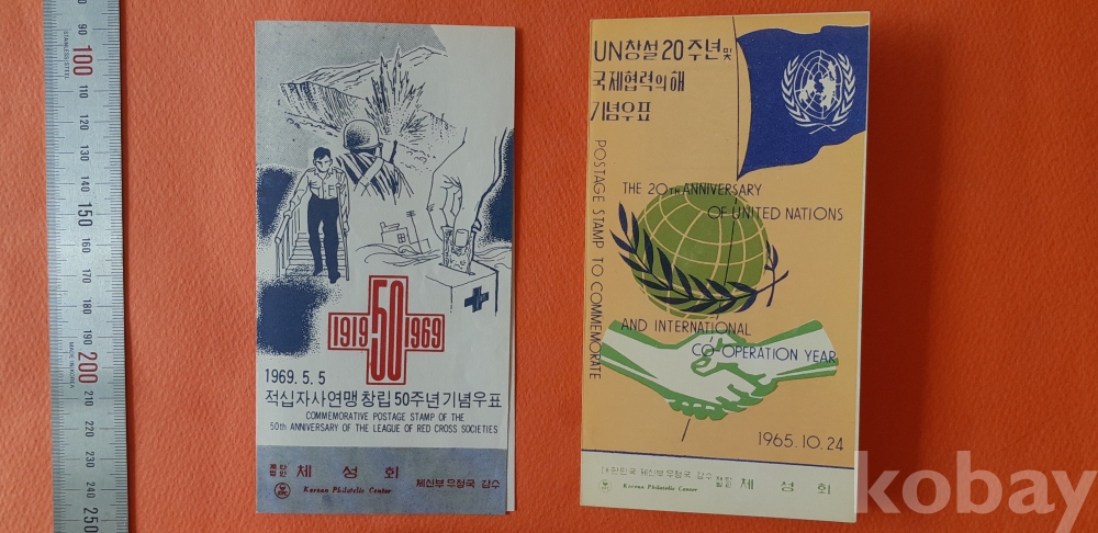 적십자연맹 창립 50주년, UN 창설 20주년 및 국제협력의 해 안내카드 2종 입니다.