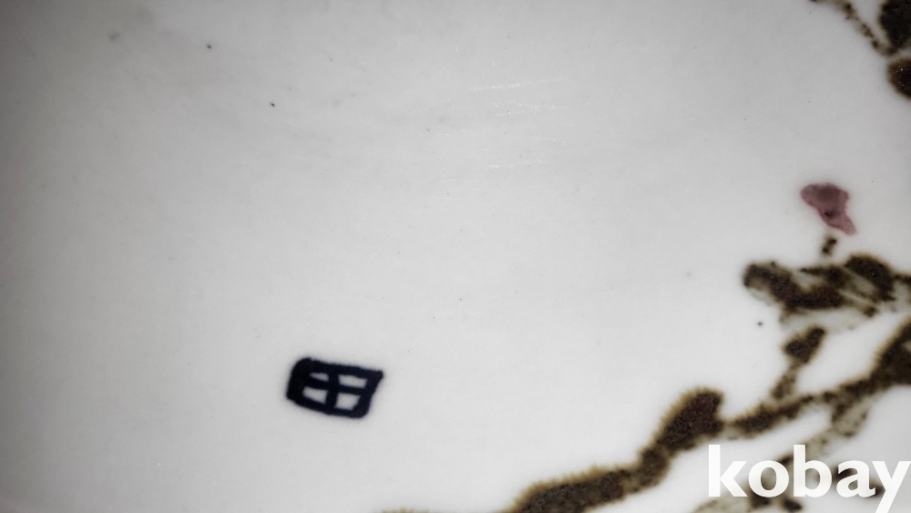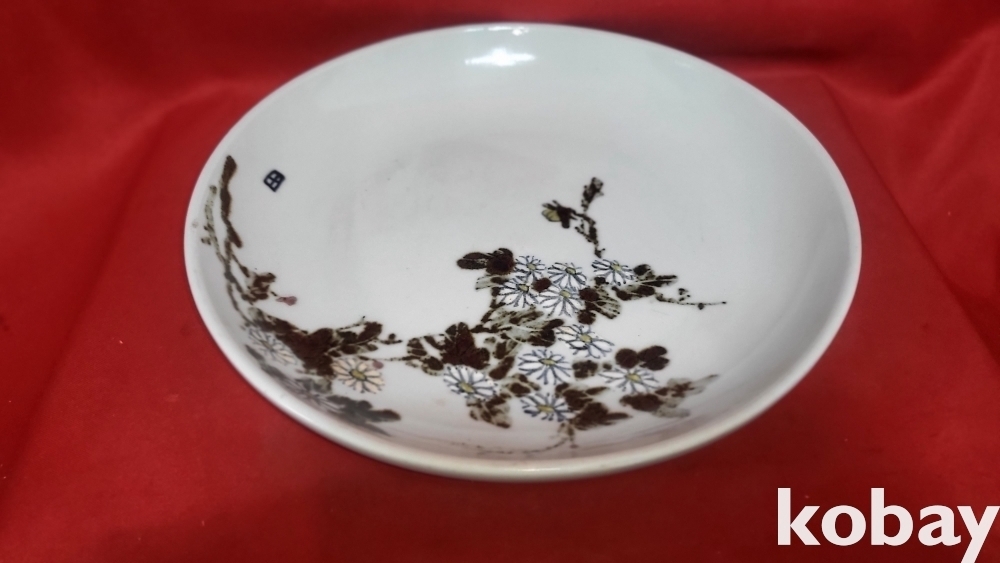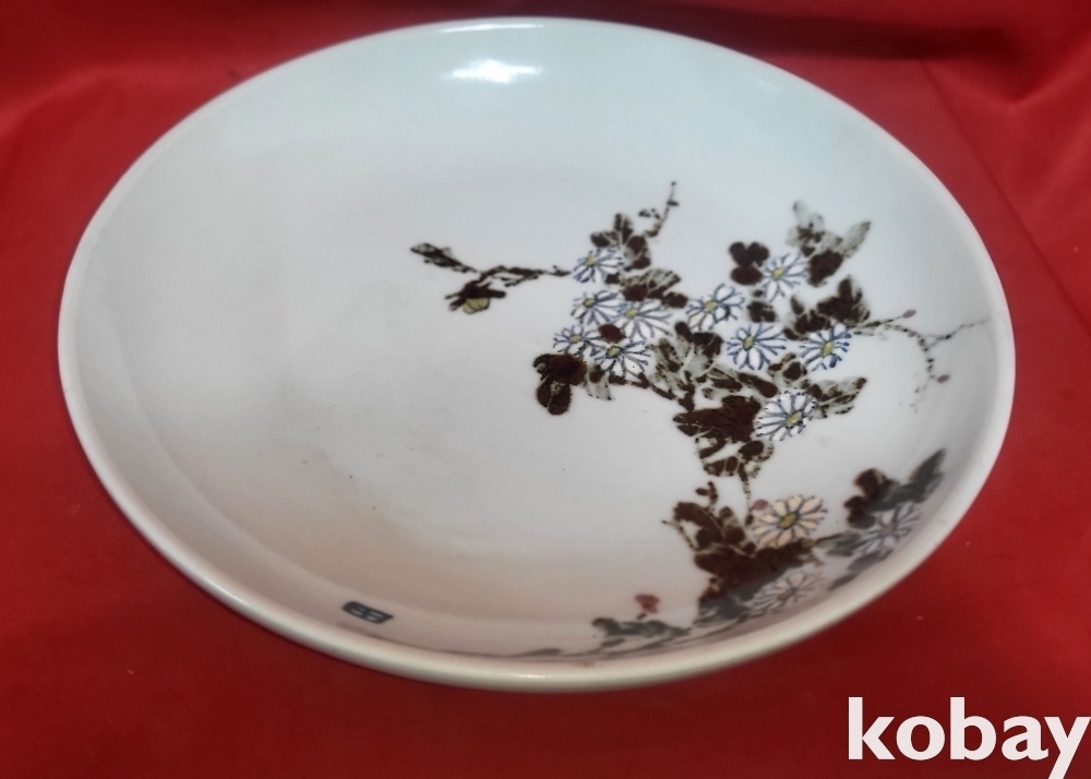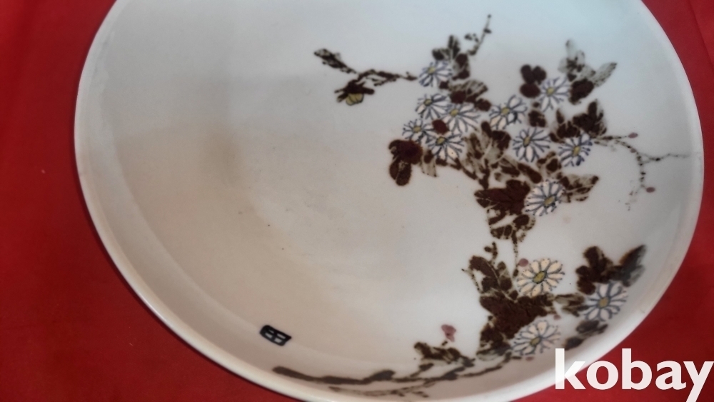 " 田 " 수결이 보이는 철화 국화 문양 큰 접시입니다,