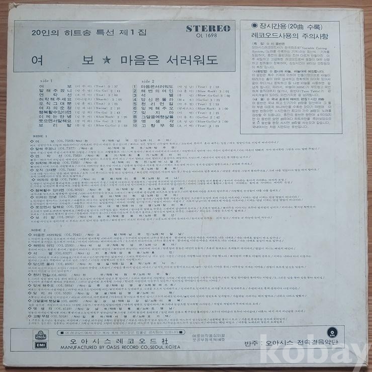 | 자켓상태 | EX : 약간의 마모, 모서리 찢김 존재 | 음반상태 | EX : 재생에 영향 없는 가벼운 기스 존재 | 발매정보 | 초반 | 가사지여부 | 유 |