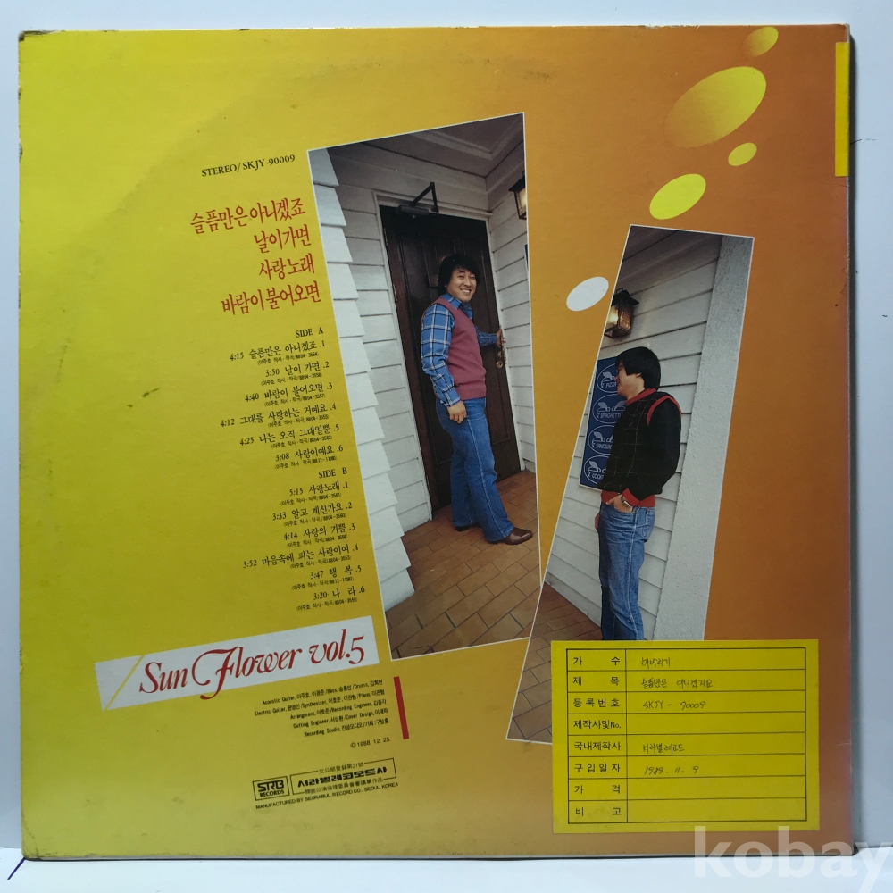 LP 84,000-49 해바라기 5집 - 슬픔만은 아니겠죠/ 사랑노래 . 자켓 EX 알판 EX 88 년제작 국내반