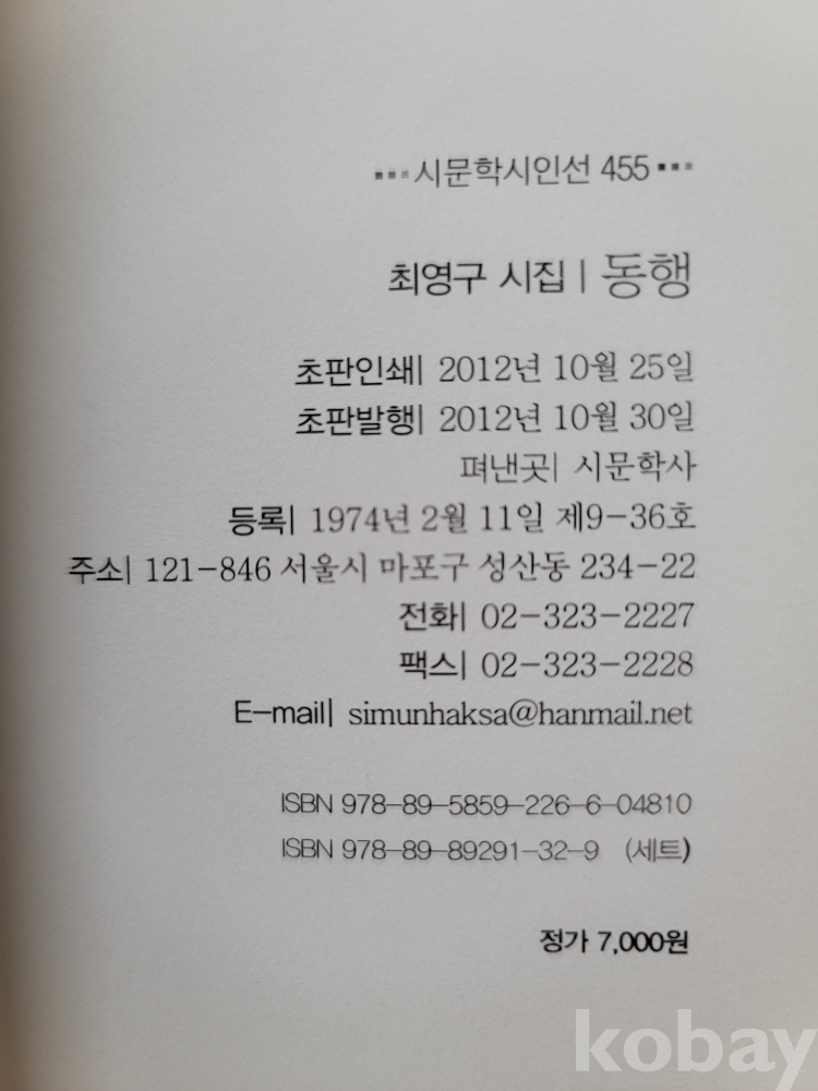 최영구(경상북도 영일: 1942) 저자서명 시집.