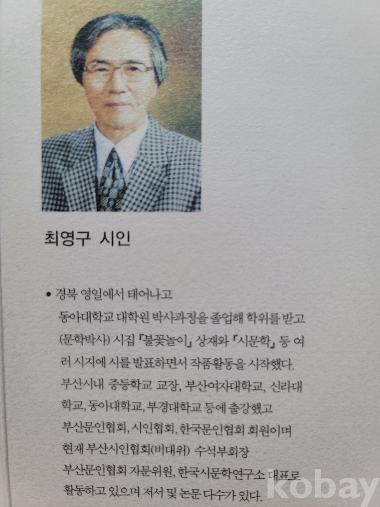 부산시의 중등학교 교장 & 부경대학교 등의 강사를 역임했던 시인.