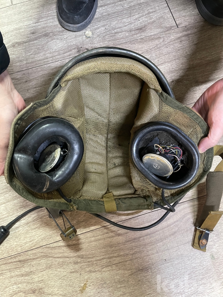 전투기 혹은 헬리콥터의 조종사들이 썻던 핼멧으로 큰 소리를 막기 위한 귀마개가 있고