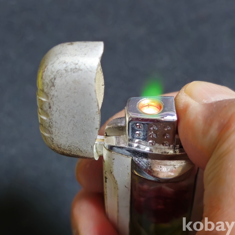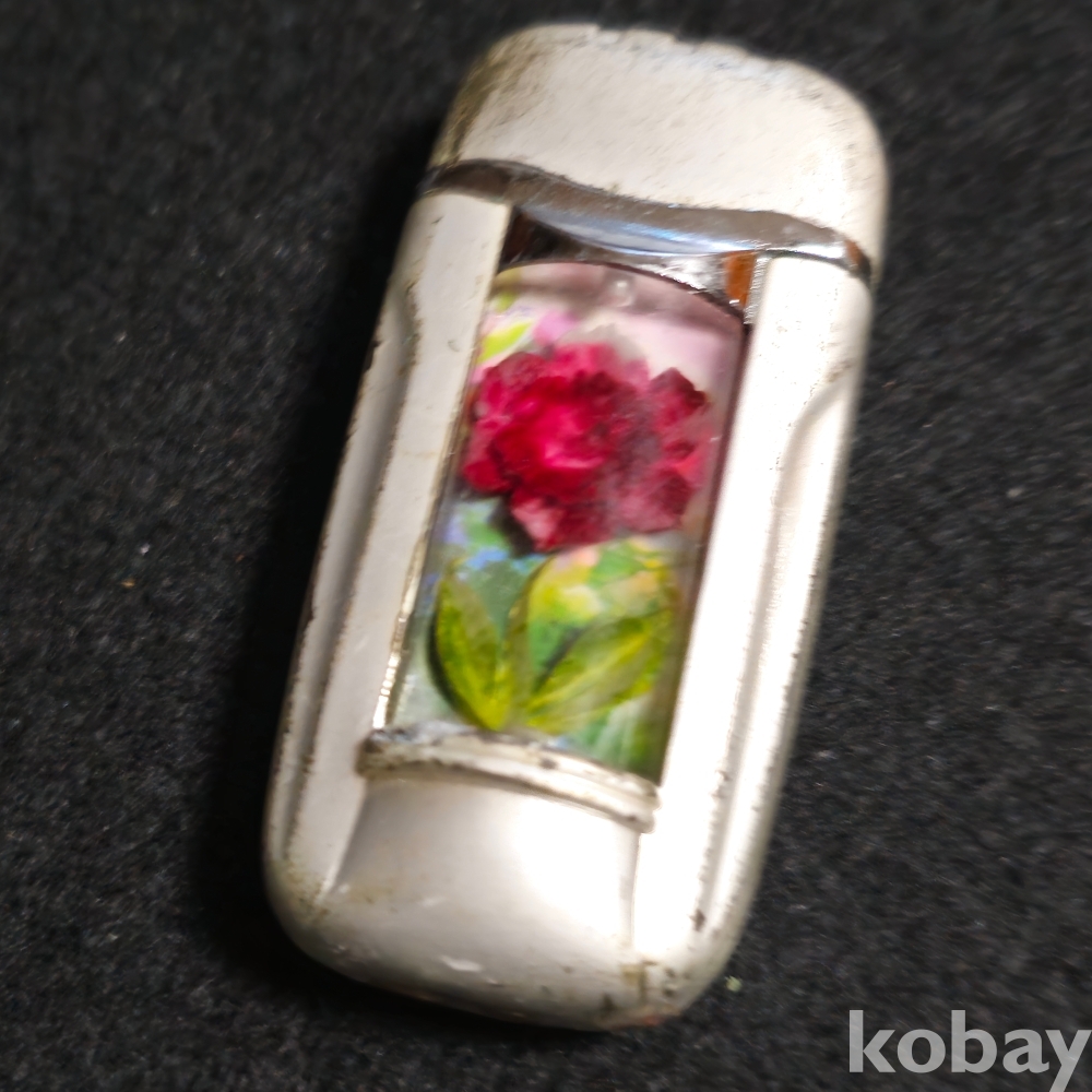 (((근현대사자료/수집용라이타))) 오래전 조화꽃이담긴 터보 라이타