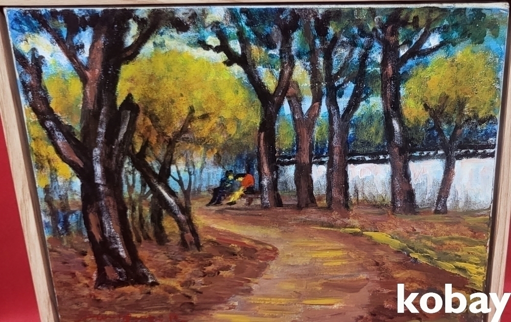 유명 서양화가 박명복 켄버스 유화 "연인" 6호입니다,