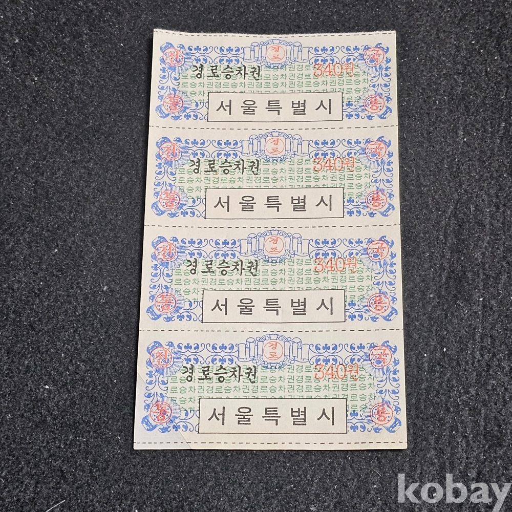 (((근현대사자료))) 오래전 서울특별시 경로승차권 5매 (340원)