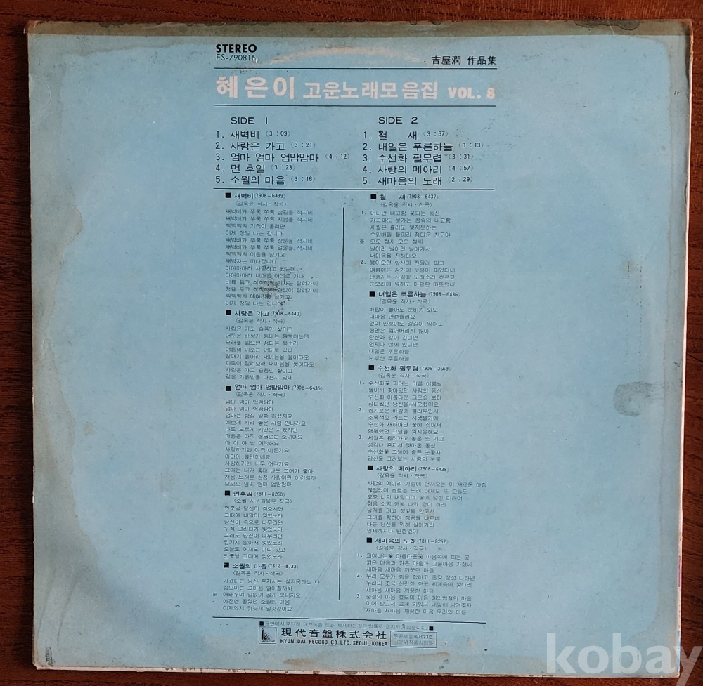 쟈켓 상단 테이핑, 음반은 옅은 스크래치 및 연흔 있으나 감상에 큰 문제 없습니다.