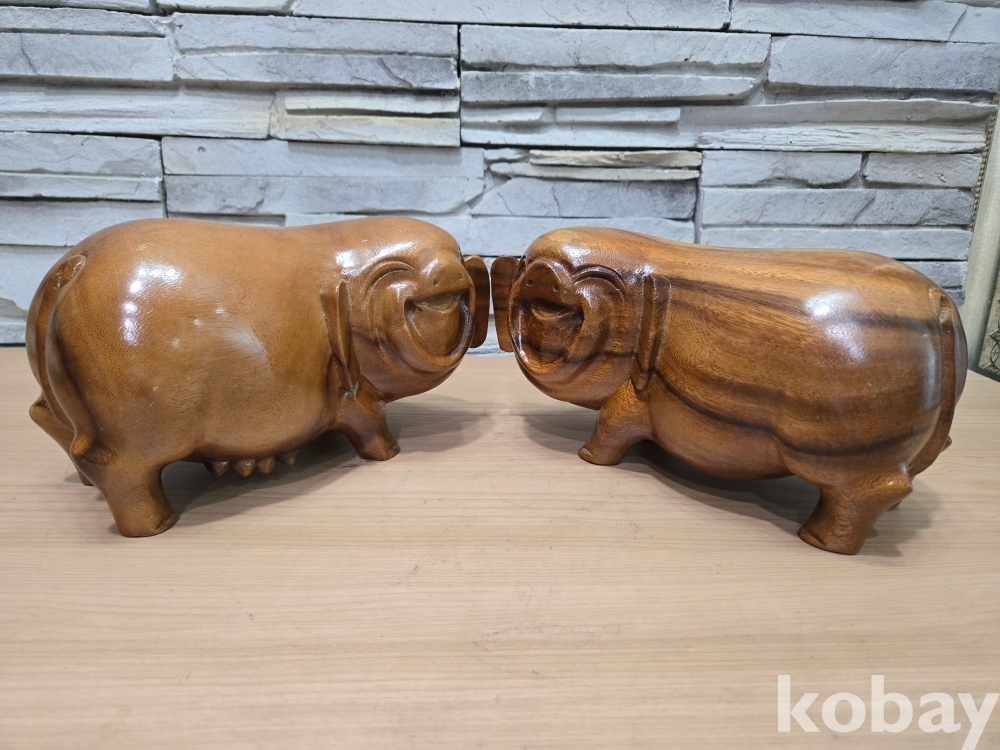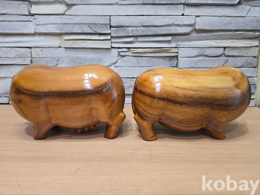 익살스런 표정의 나무 돼지 2마리 입니다.