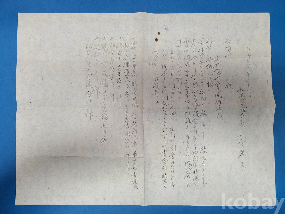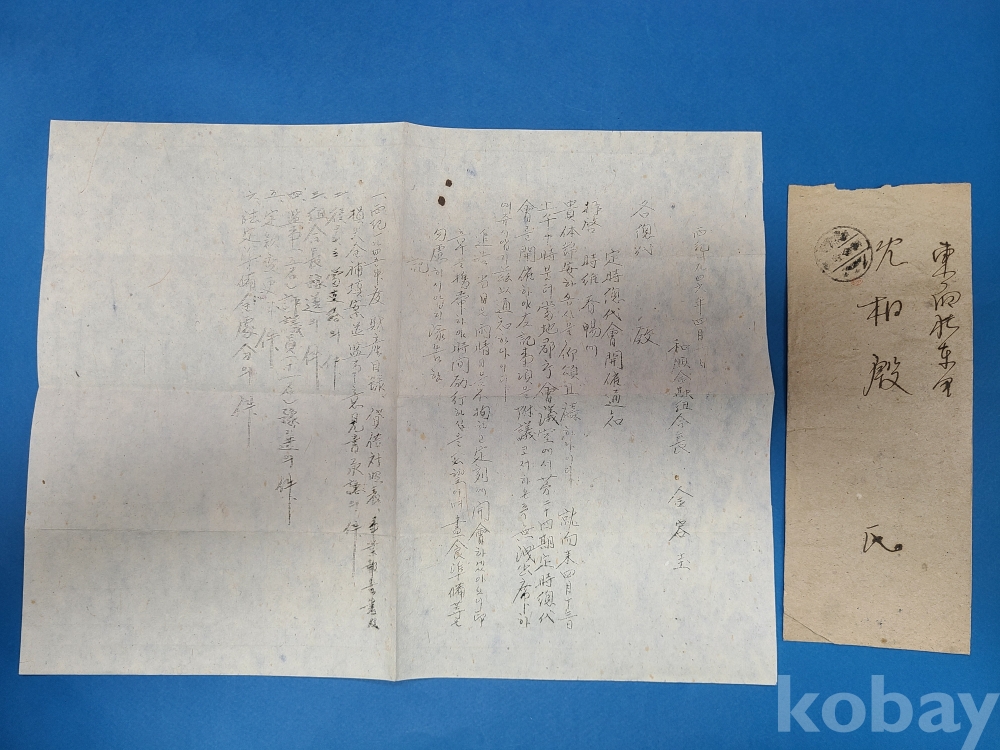 **** 1946년 全南和順 料金收納 실체* 접수당무자 私印(도장)날인*和順金融組合 발송 [定期總代會開催通知] 포함