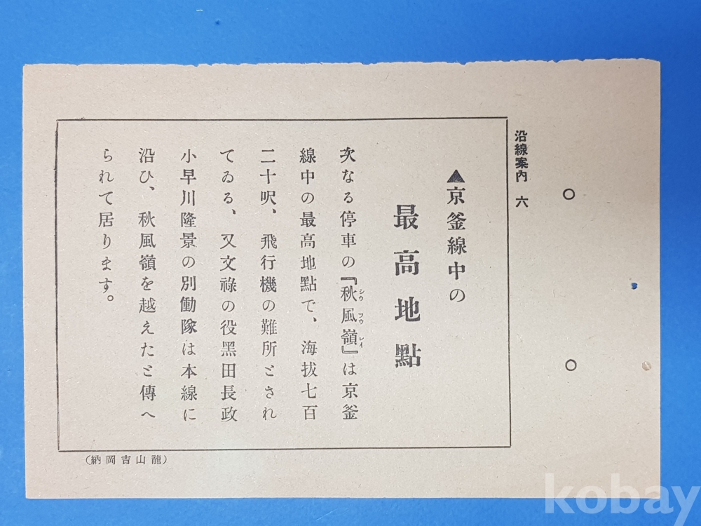 **** 일제강점기 조선안내 리플릿 [추풍령]
