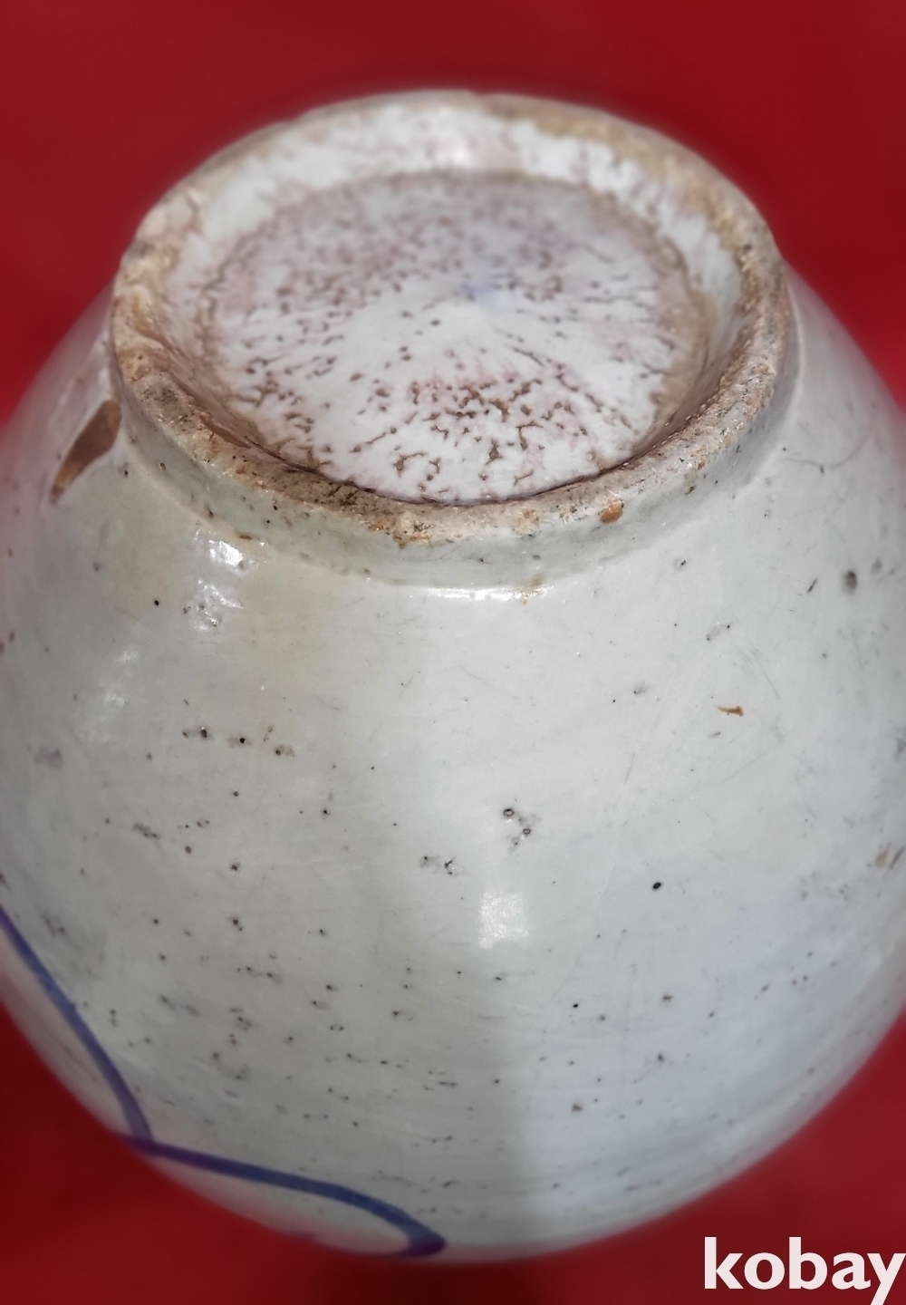 조선시대 백자 초화문 항입니다,가마에서 발생한 이물질이 붙어 있습니다,