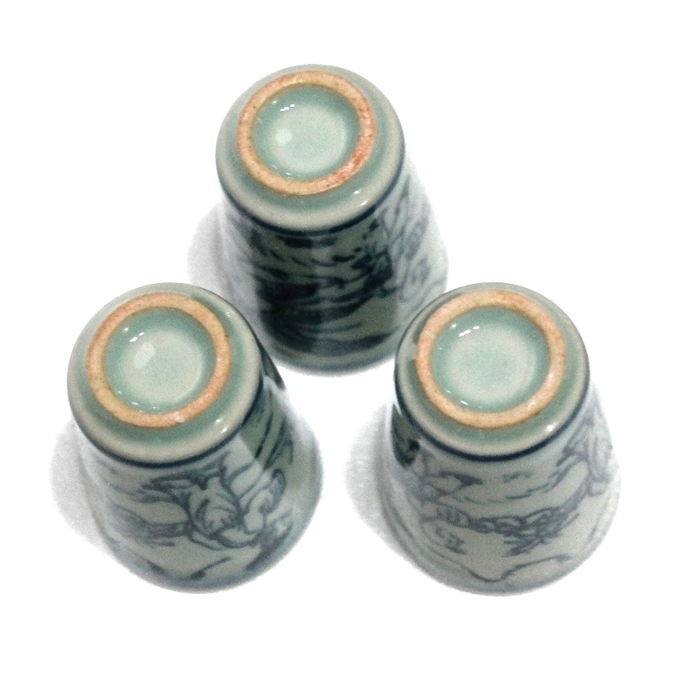 도자기로 만들어진 골동품 재련작 소주컵3점 입니다.