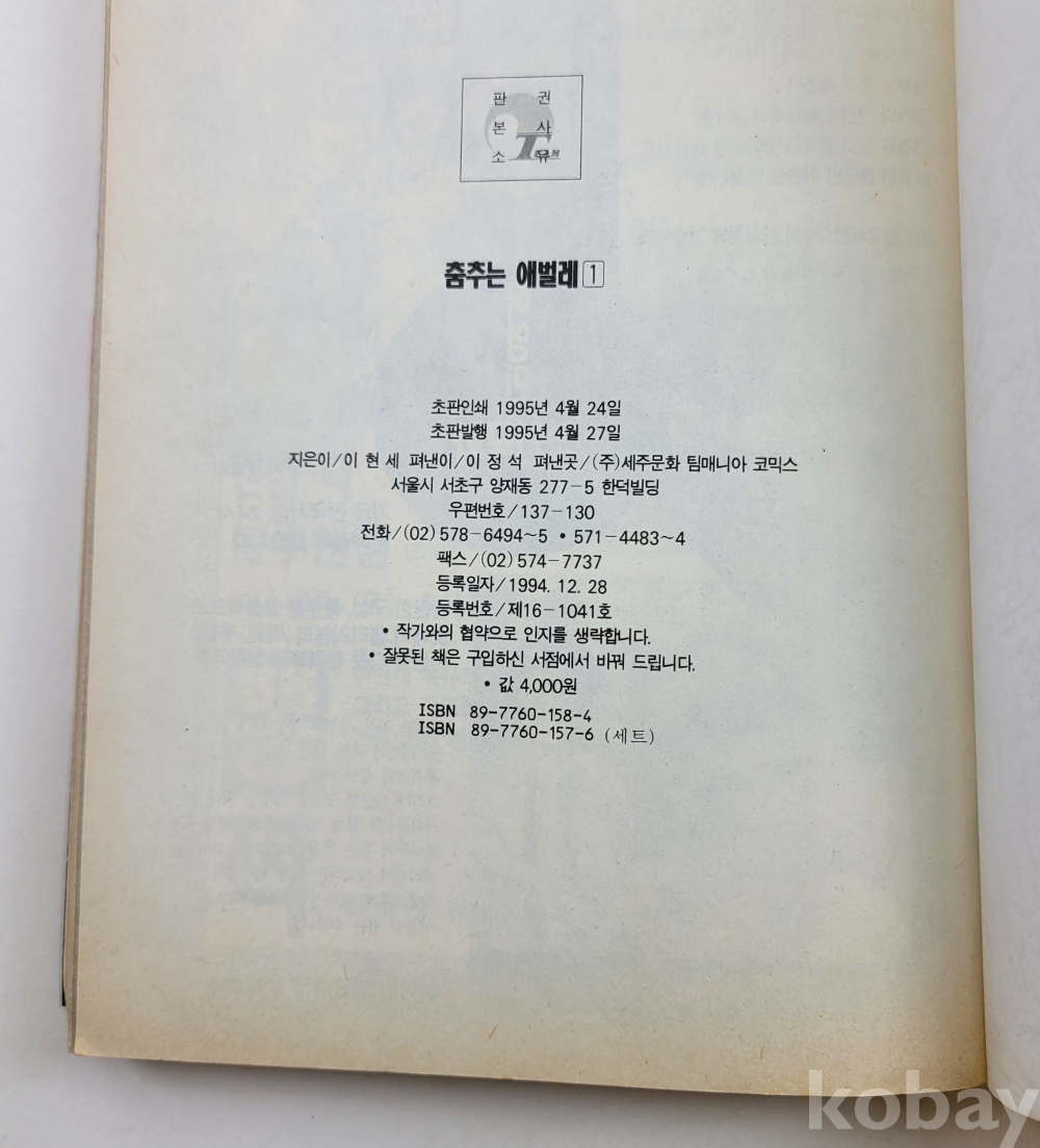 물 품 명 | [팀매니아코믹스] 이현세 / 춤추는 애벌레 (1~5)완결 총5권 / 1995년 초판 / 세주문화 |
