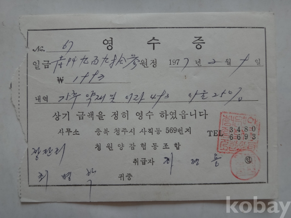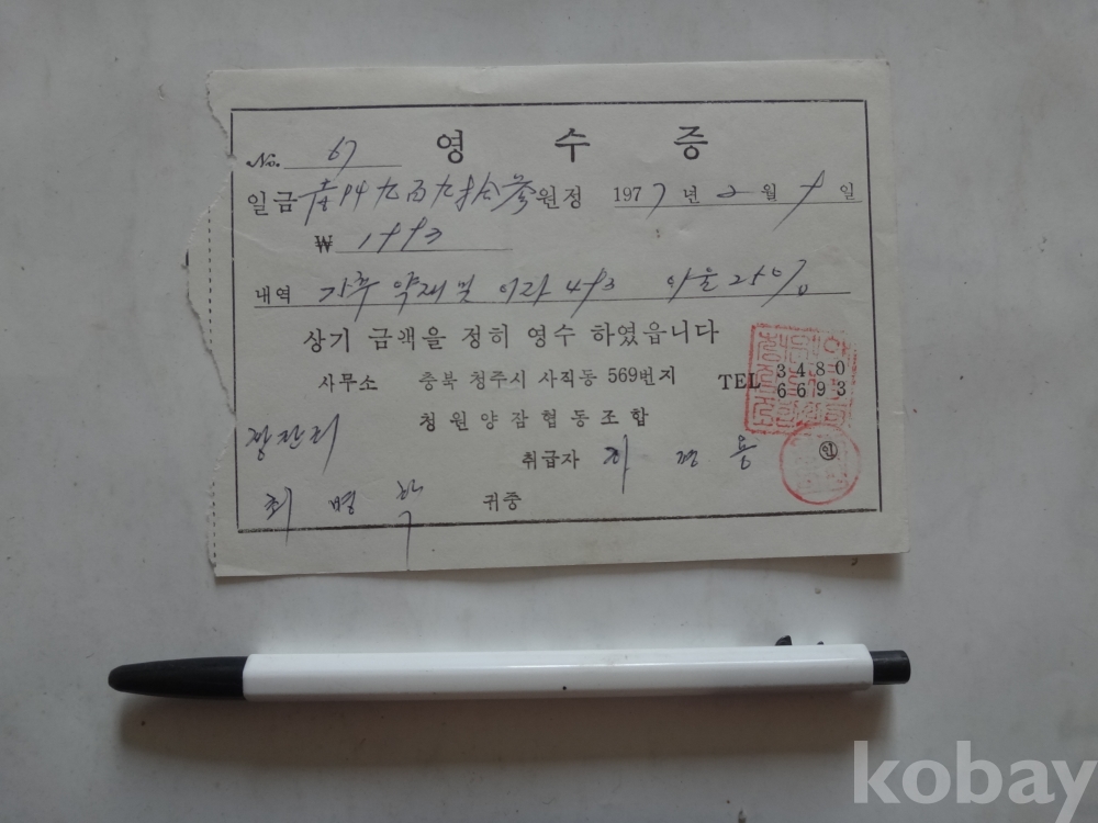 청원양잠협동조합 - 약재 및 이자 영수증 (1977년)