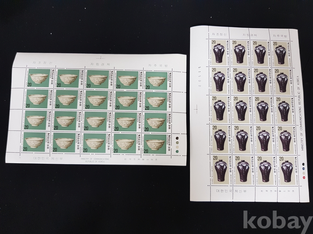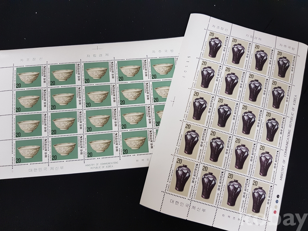 - 미사용 1977년 도자기시리즈 - 제 4집 전지 2종 모음