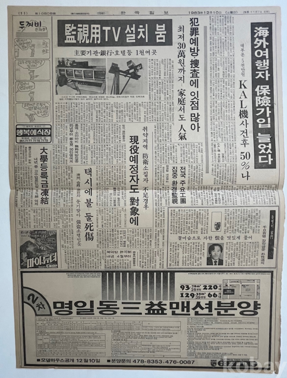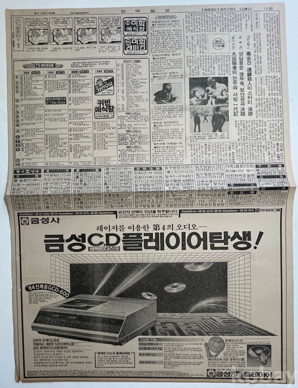 CD플레이어 광고가 실린 1983년 한국일보 낱장입니다.