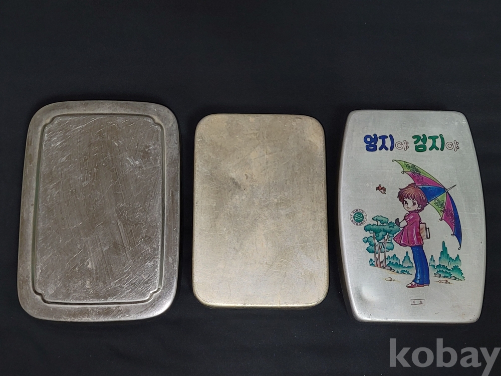 빈티지 세월 감이 느껴지는 옛날 양철 도시락 3개 일괄입니다.