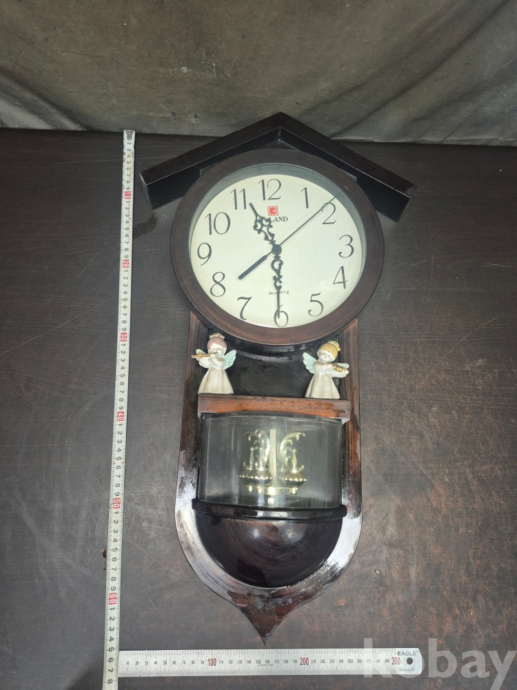 1980년 엔틱 벽걸이형 시계 정상작동 메이드 인 코리아 36*13*63