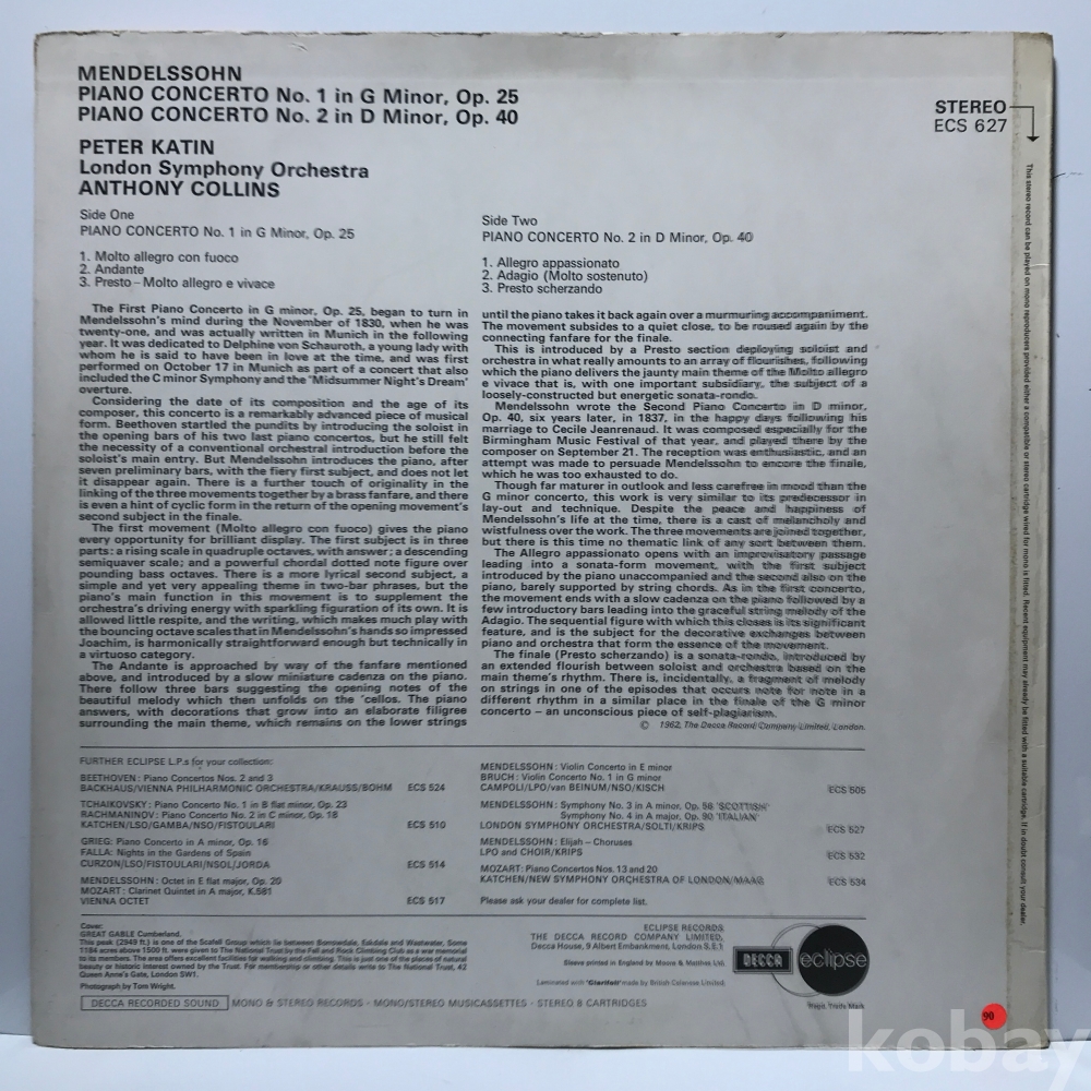 LP 35,950-47 Mendelssohn Piano Concerto No.1 - Anthony Collins . 71 수입 자켓 EX 알판 EX