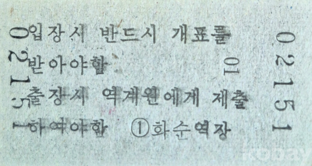 통일호 특정구간 승차권 화순-광주 일반입니다.