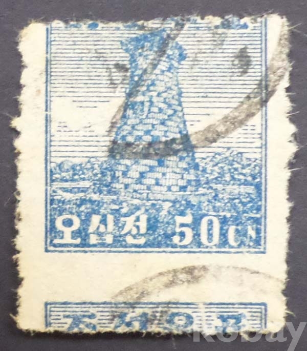 **** 미군정청보통 50전 첨성대 사용필 (천공에러)