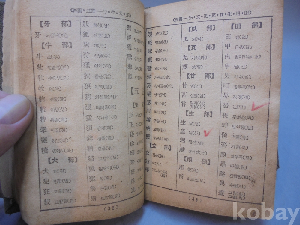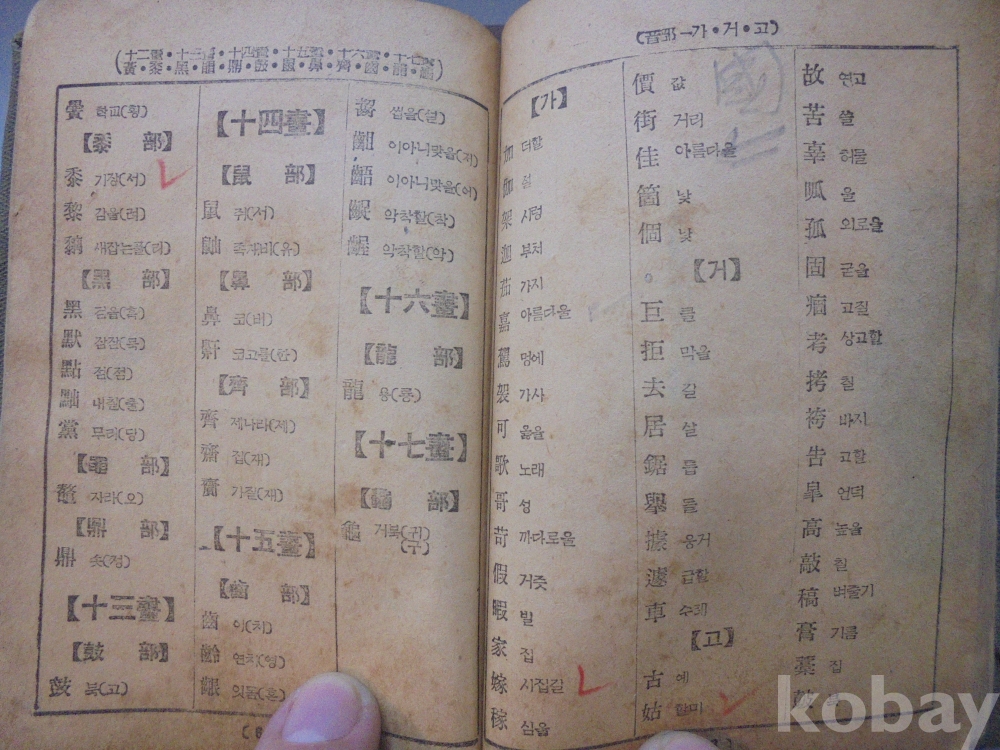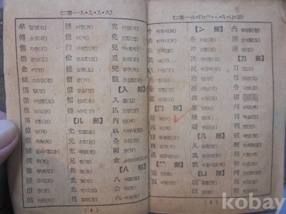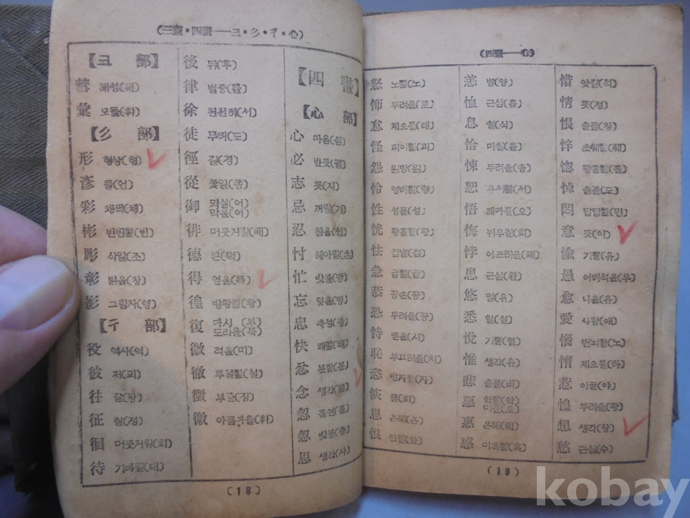 옛날 " 표준 신자전 " 학생 한문 사전으로 사진에 보시듯이 간기부분 멸실로 보이지 않습니다.