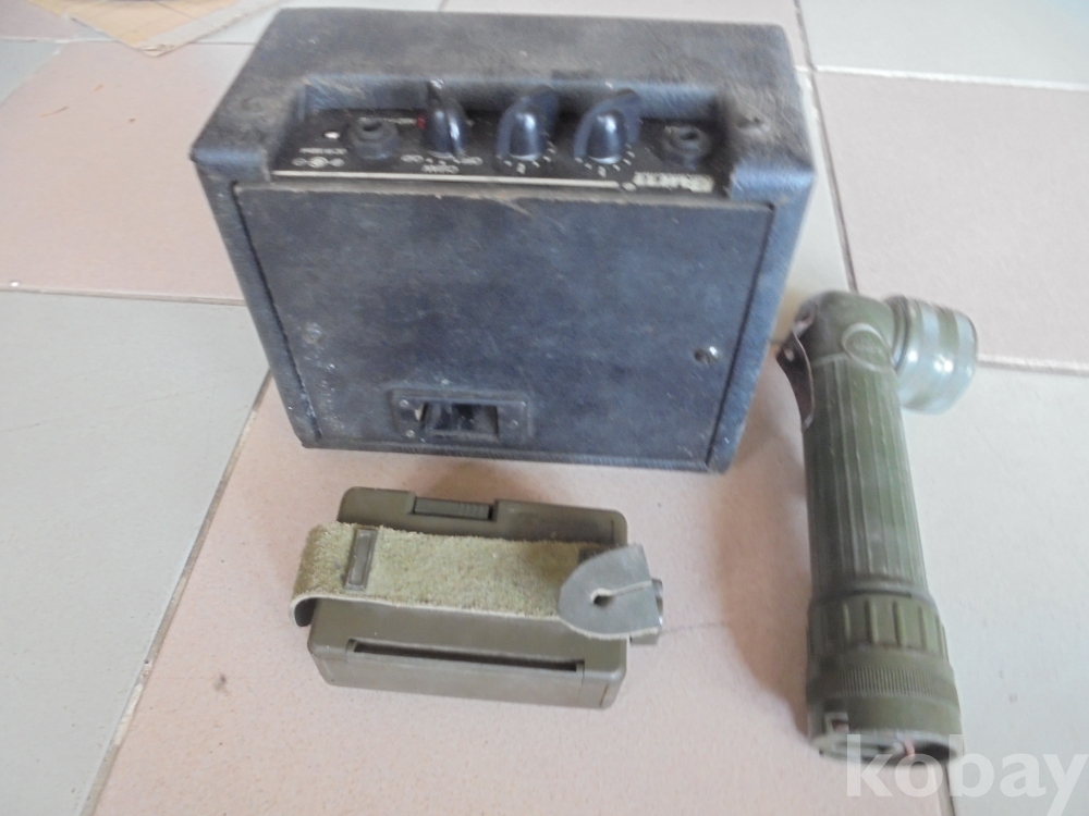 복잡하게 조절하는 전자스피커로 작동여부알수없고 특이한 허리에차는 전기불을 3가지색갈로 조절하는 후라시류와 녹이없는 일반후라시 총3점