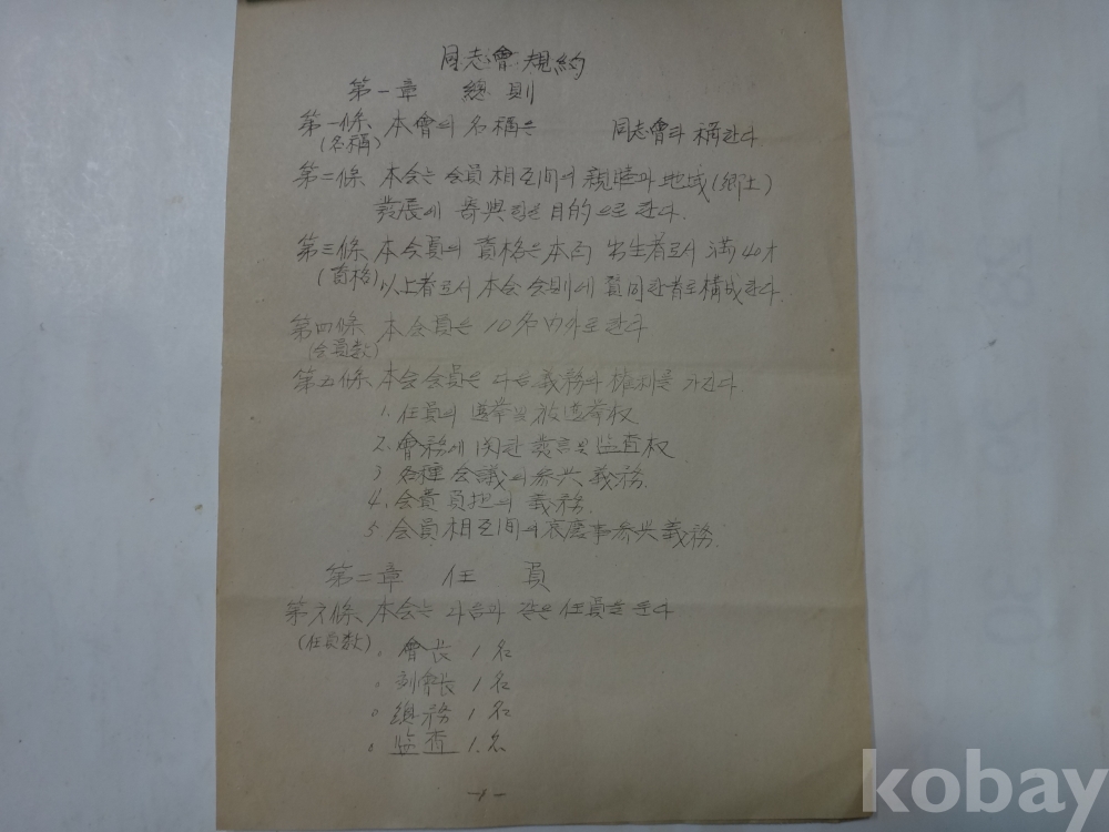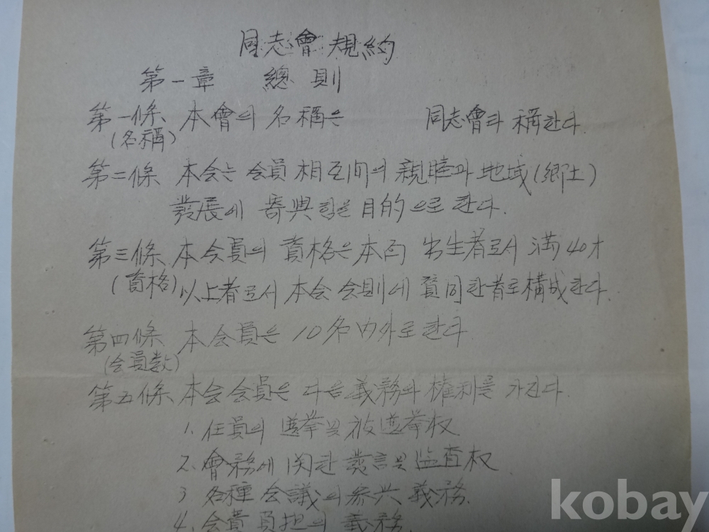 동지회 규약 ..지역(행토) 발전에 기여함을 목적으로 한다 (1977년)