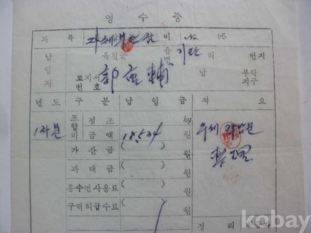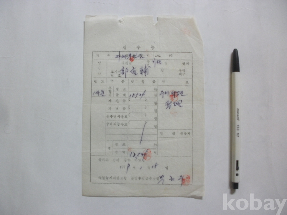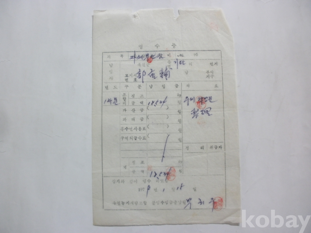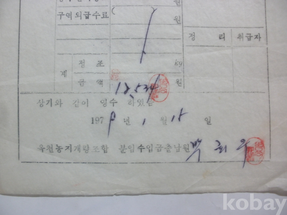 조합비 (수세 가납분 정리) - 영수증 (1979년, 옥천농지개량조합)