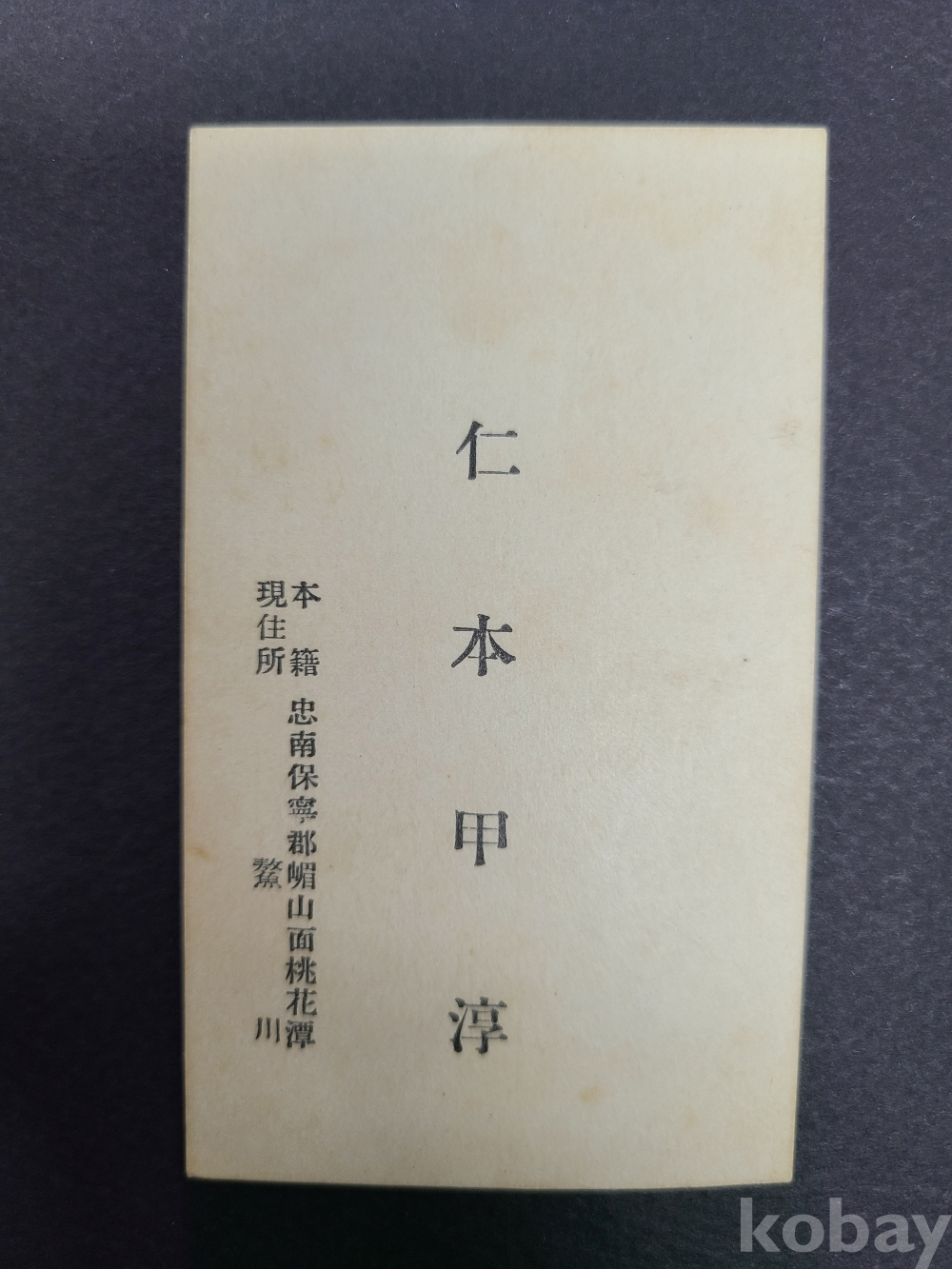 **** [일제강점기 명함]*創氏改名/충청남도 보령군 오천 인본갑순