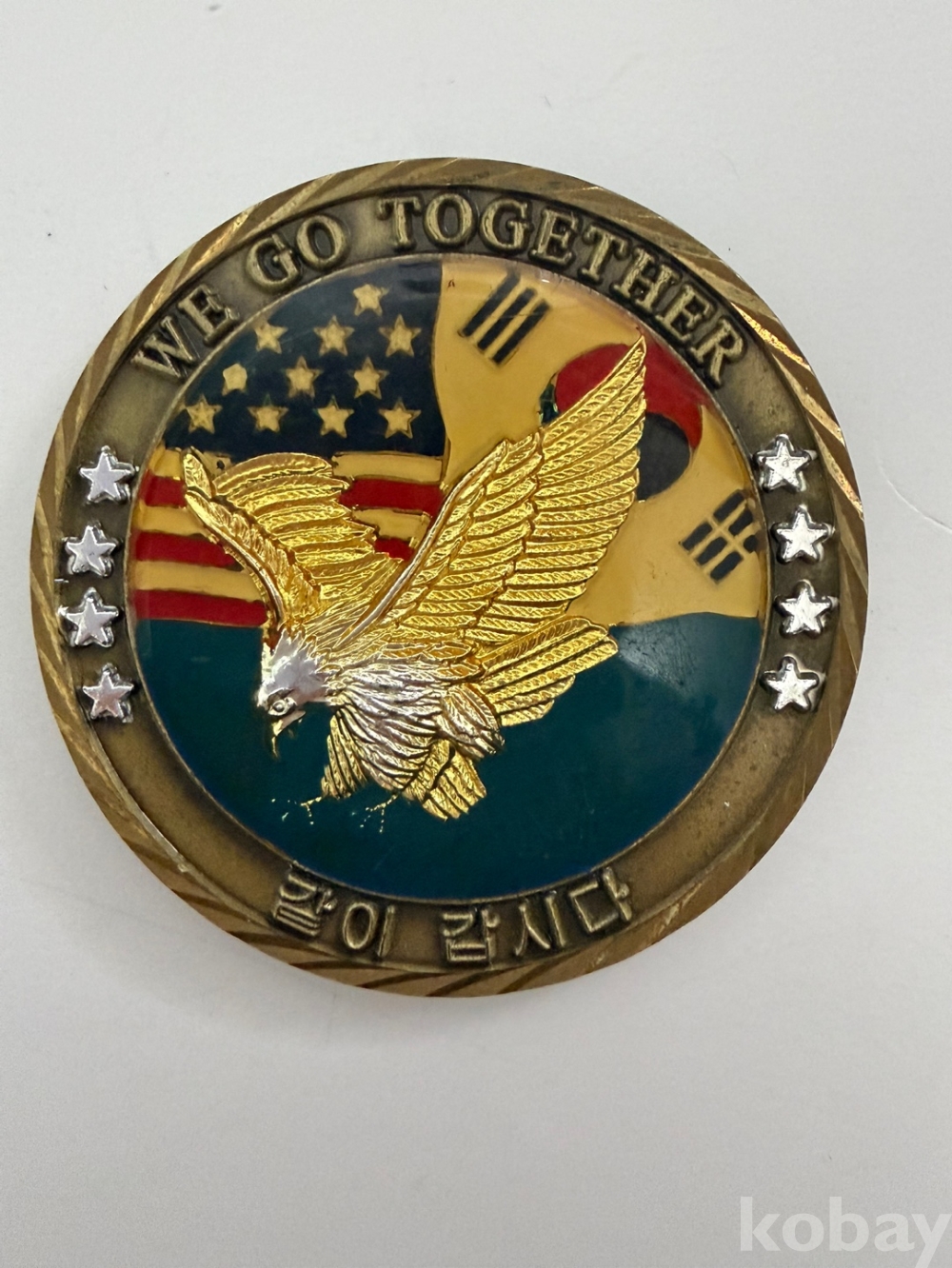 WE GO TOGETHER (같이 갑시다)가 영어와 한글로 새겨져 있습니다.